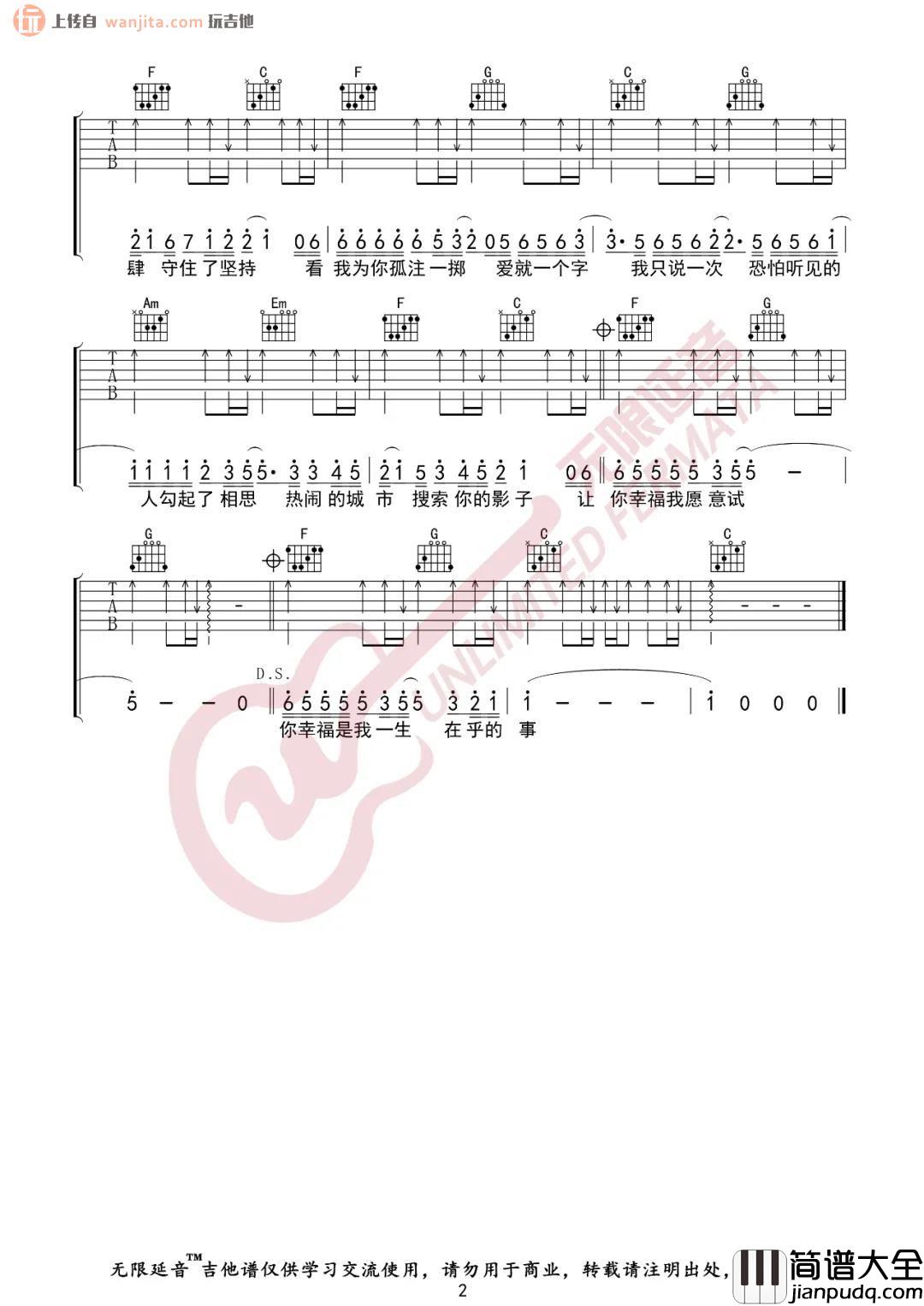 《爱就一个字》吉他谱,由无限延音编配,选用C调指法,弹唱难度不大,简单的半分解和弦+扫弦弹唱,新手可以尝试这个版本,里面同样也有其他版本的谱子,喜欢的朋友可以根据自己喜好选择版本。
