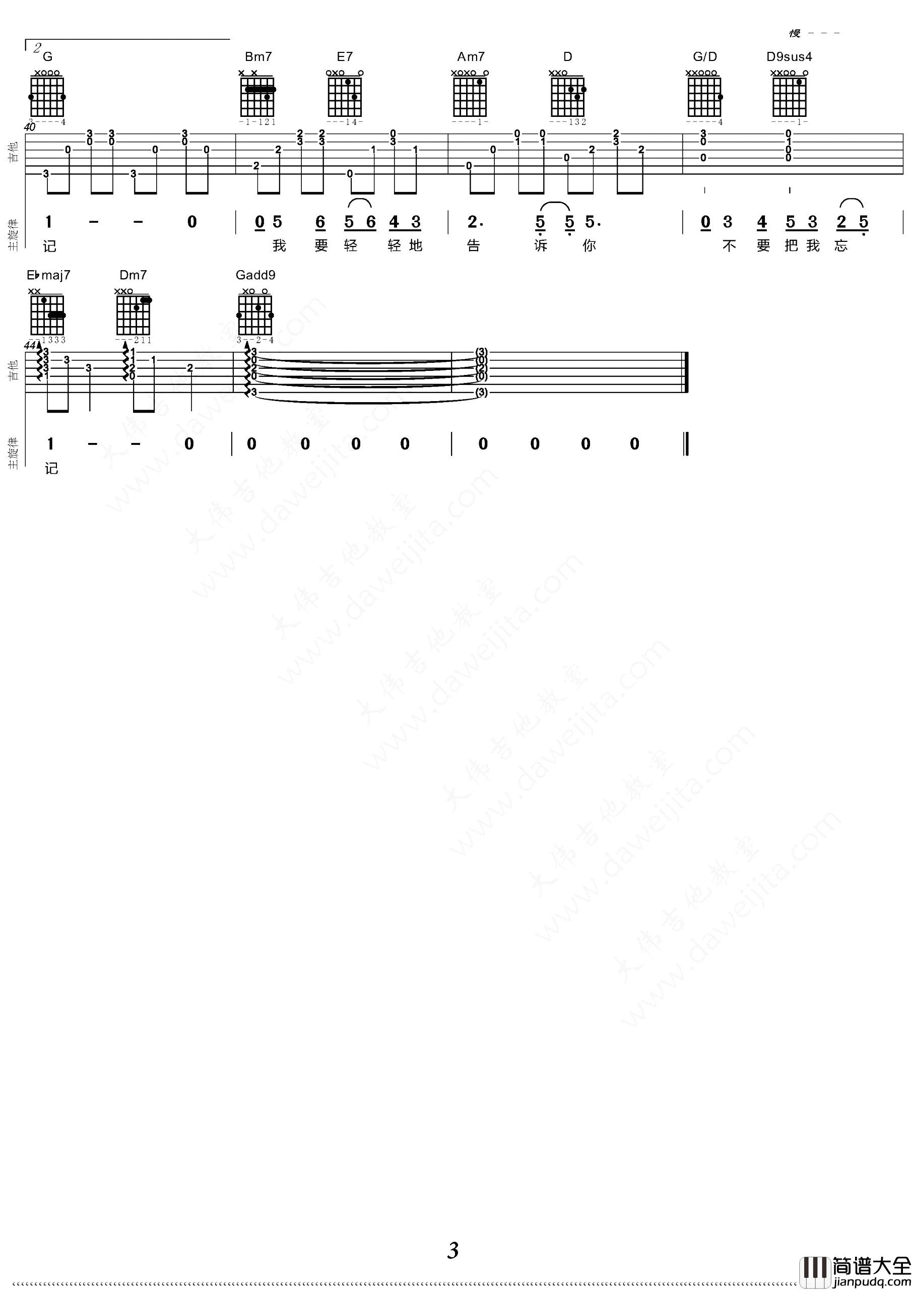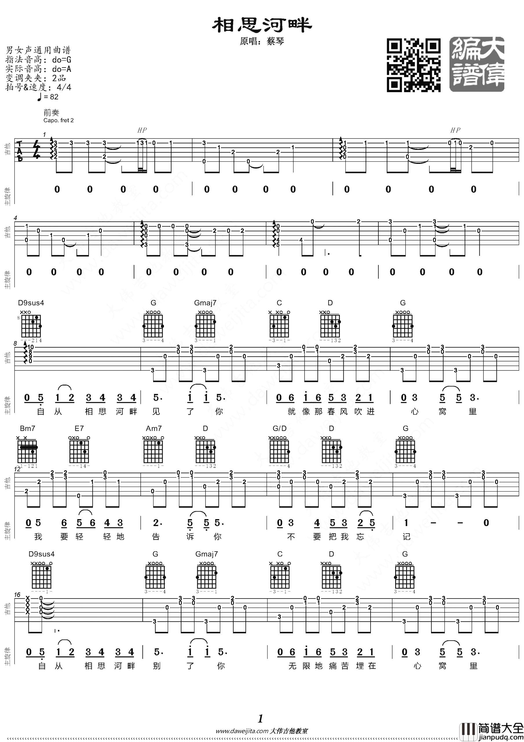 公众号:绵羊乐谱 这首曲谱是大伟吉他编配制谱,原调是A调,选用G调指法,变调夹夹2品弹唱原调,难度不大,同学们可以参考大伟老师的吉他弹唱演示,以及后面还包括整首曲谱的教学讲解。 《相思河畔》吉他弹唱演示/教学 公众号:绵羊乐谱 | 官方QQ群:978773290 不吃独食,学会分享!本文链接:http://www.shaomingyang.com/btb/30565.html 转载请标明出处,尊重原创(๑╹◡╹)ノ。如信息有误或版权疑问,请通过网站底部联系我们会第一时间处理,感谢理解支持(◕ᴗ◕✿)!
