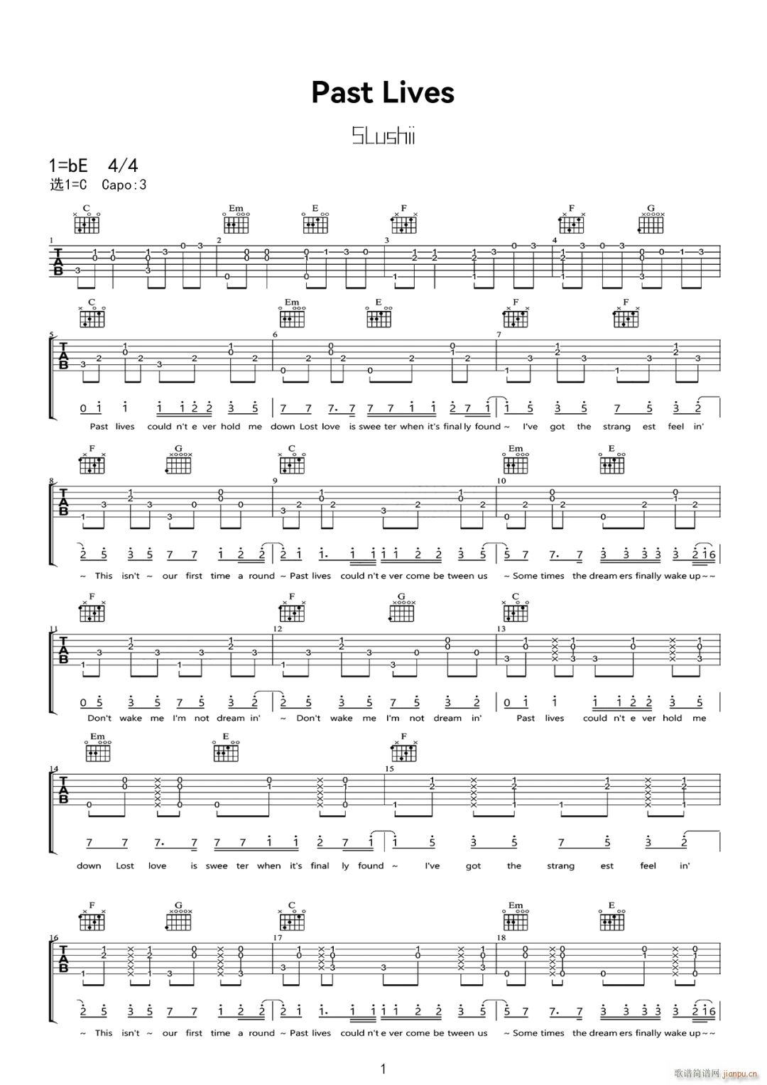 公众号:绵羊乐谱 Past-Lives ( C调原版编配)免费弹唱吉他谱_六线谱/词曲:Slushii 点击: 1000 图片可能经过缩放,手机长按或点开后长按保存,电脑鼠标右键保存. (网络) 公众号:绵羊乐谱 | 官方QQ群:978773290 不吃独食,学会分享!本文链接:http://www.shaomingyang.com/btb/30566.html 转载请标明出处,尊重原创(๑╹◡╹)ノ。如信息有误或版权疑问,请通过网站底部联系我们会第一时间处理,感谢理解支持(◕ᴗ◕✿)!