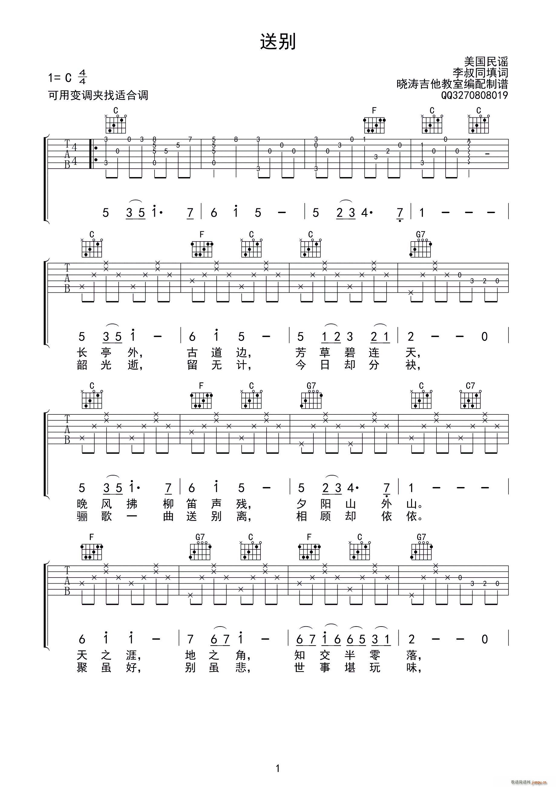 公众号:绵羊乐谱 送别( 编配版)免费弹唱吉他谱_六线谱/词曲: 李叔同点击: 1000 图片可能经过缩放,手机长按或点开后长按保存,电脑鼠标右键保存. (晓涛吉他) 公众号:绵羊乐谱 | 官方QQ群:978773290 不吃独食,学会分享!本文链接:http://www.shaomingyang.com/btb/30631.html 转载请标明出处,尊重原创(๑╹◡╹)ノ。如信息有误或版权疑问,请通过网站底部联系我们会第一时间处理,感谢理解支持(◕ᴗ◕✿)!