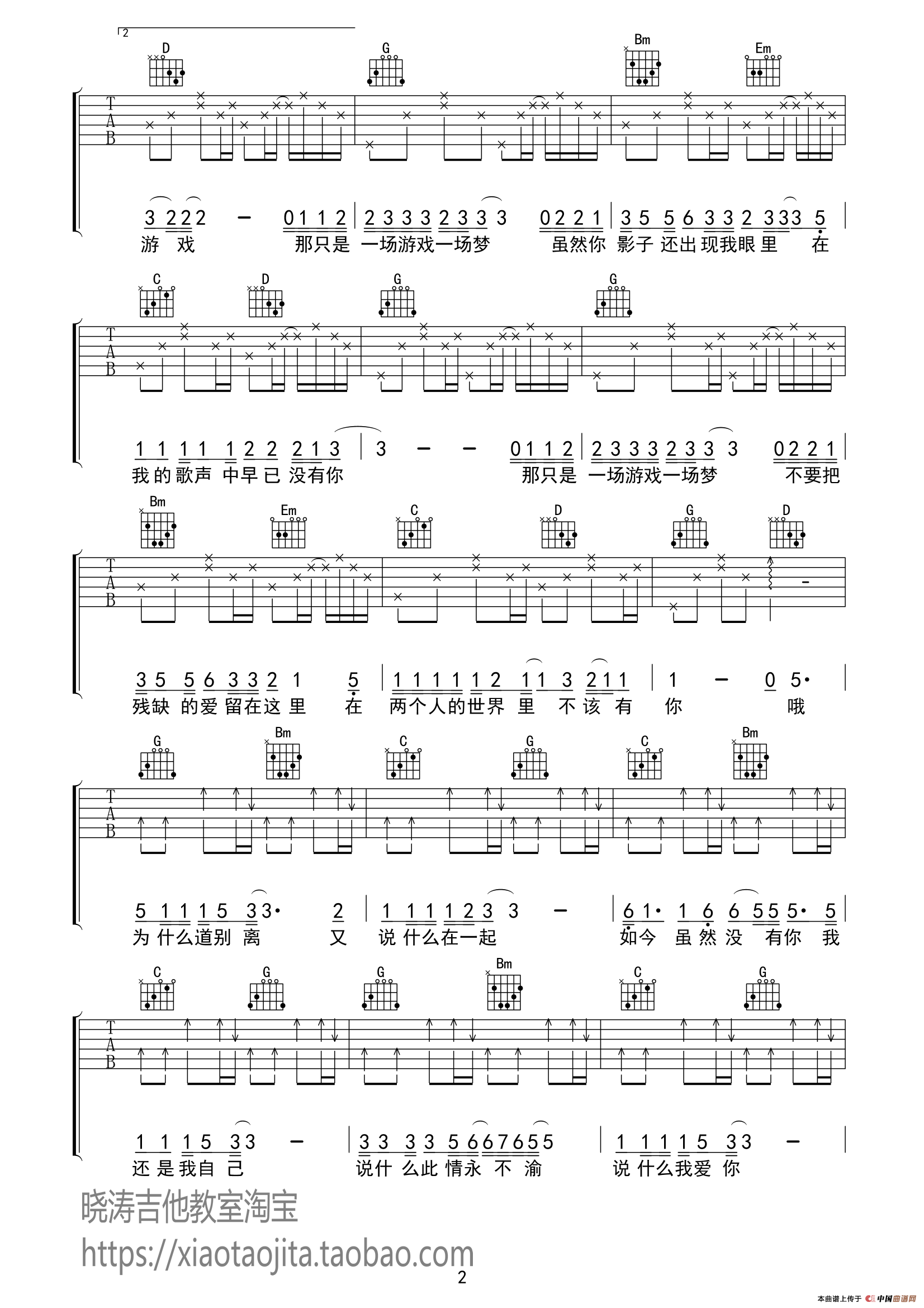 王杰《一场游戏一场梦》吉他谱-图2