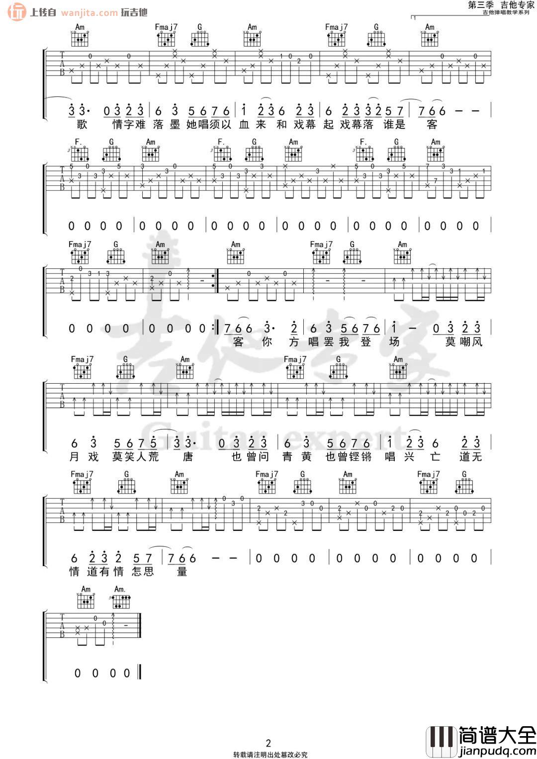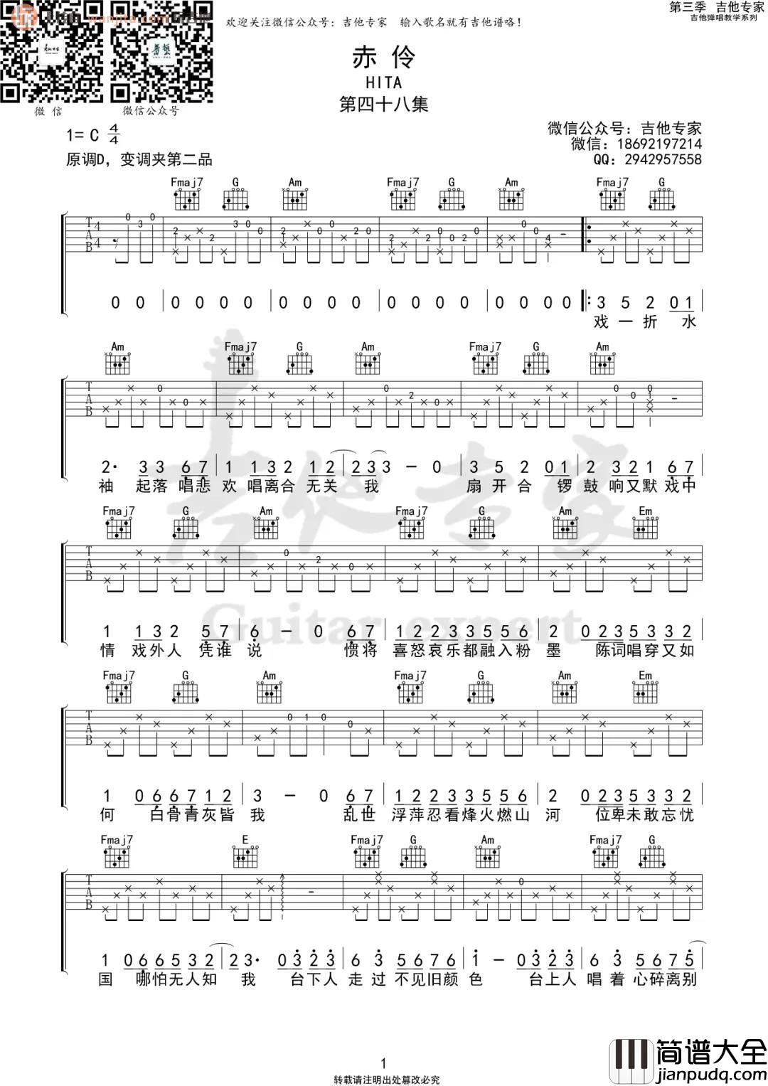 《赤伶》吉他谱,由吉他专家编配制谱,原调是D调,选用C调指法编配,变调夹夹2品弹唱,曲谱完整,弹唱难度不大,喜欢的朋友可以试试这一个版本。