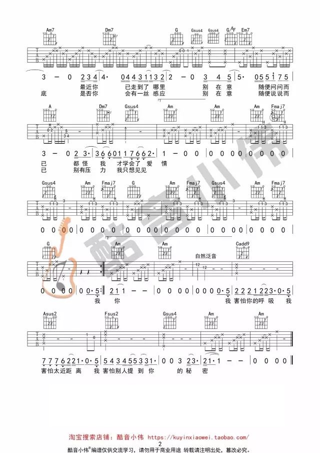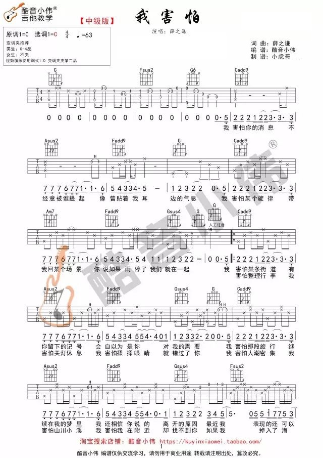 本文题目 我恐惧吉他谱 薛之谦(C调) 吉他图片谱2张 ,本文网址