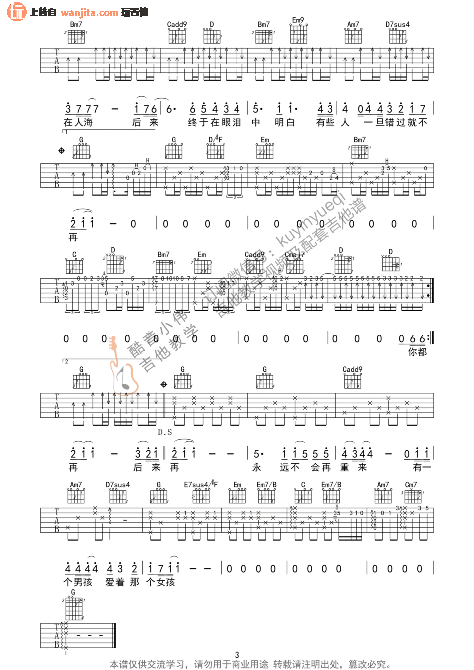 公众号:绵羊乐谱 后来吉他谱是由酷音小伟编排,男声0-2品,女声5-7品。这首歌流唱于大街小巷,没人不知。 公众号:绵羊乐谱 | 官方QQ群:978773290 不吃独食,学会分享!本文链接:http://www.shaomingyang.com/btb/30836.html 转载请标明出处,尊重原创(๑╹◡╹)ノ。如信息有误或版权疑问,请通过网站底部联系我们会第一时间处理,感谢理解支持(◕ᴗ◕✿)!