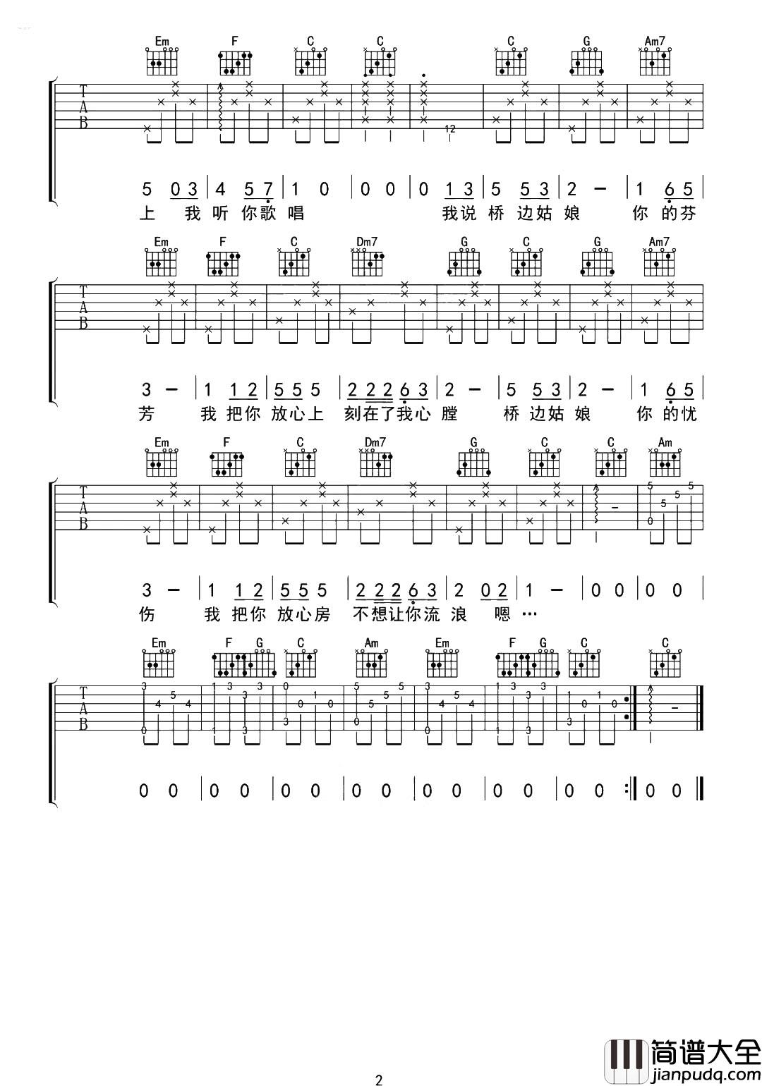 海伦《桥边姑娘》吉他谱-2