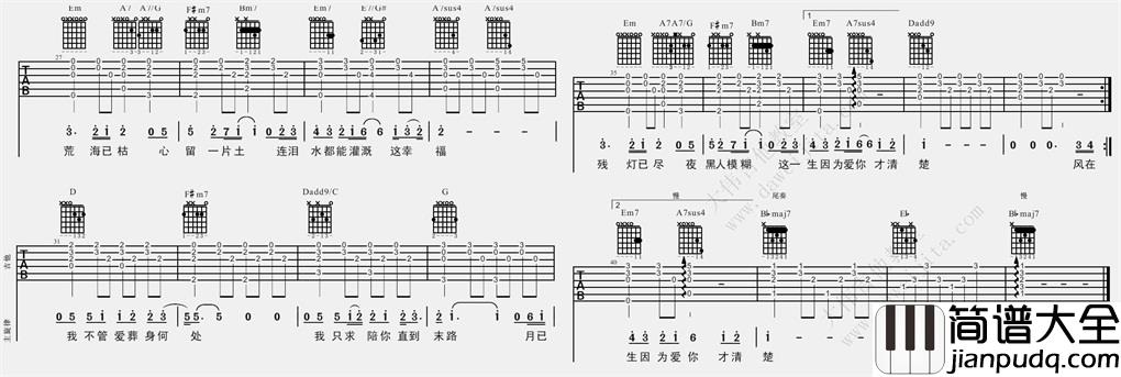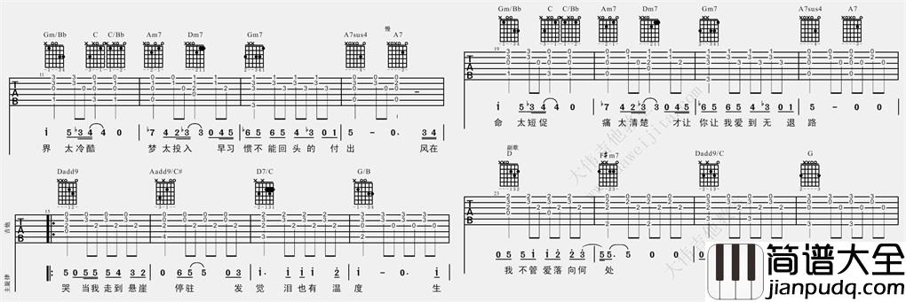 《悬崖》吉他谱,原调D调,不使用变调夹。这张谱子使用了太多的和弦,不推荐新手学习,而且歌曲里面的情感比较丰富,需要很深的理解才能表达的清楚。