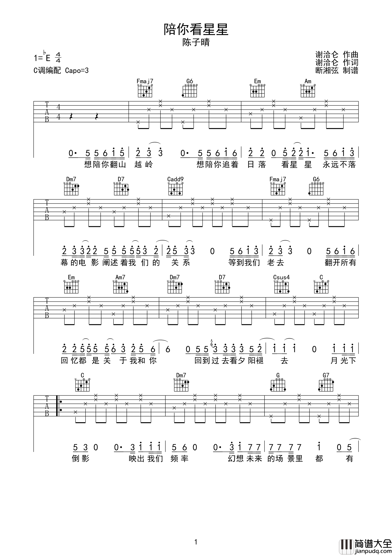 公众号:绵羊乐谱 《陪你看星星》总共3张高清图片谱,原调bE,本谱为C调指法编配,变调夹夹3品弹唱原调。 公众号:绵羊乐谱 | 官方QQ群:978773290 不吃独食,学会分享!本文链接:http://www.shaomingyang.com/btb/30866.html 转载请标明出处,尊重原创(๑╹◡╹)ノ。如信息有误或版权疑问,请通过网站底部联系我们会第一时间处理,感谢理解支持(◕ᴗ◕✿)!