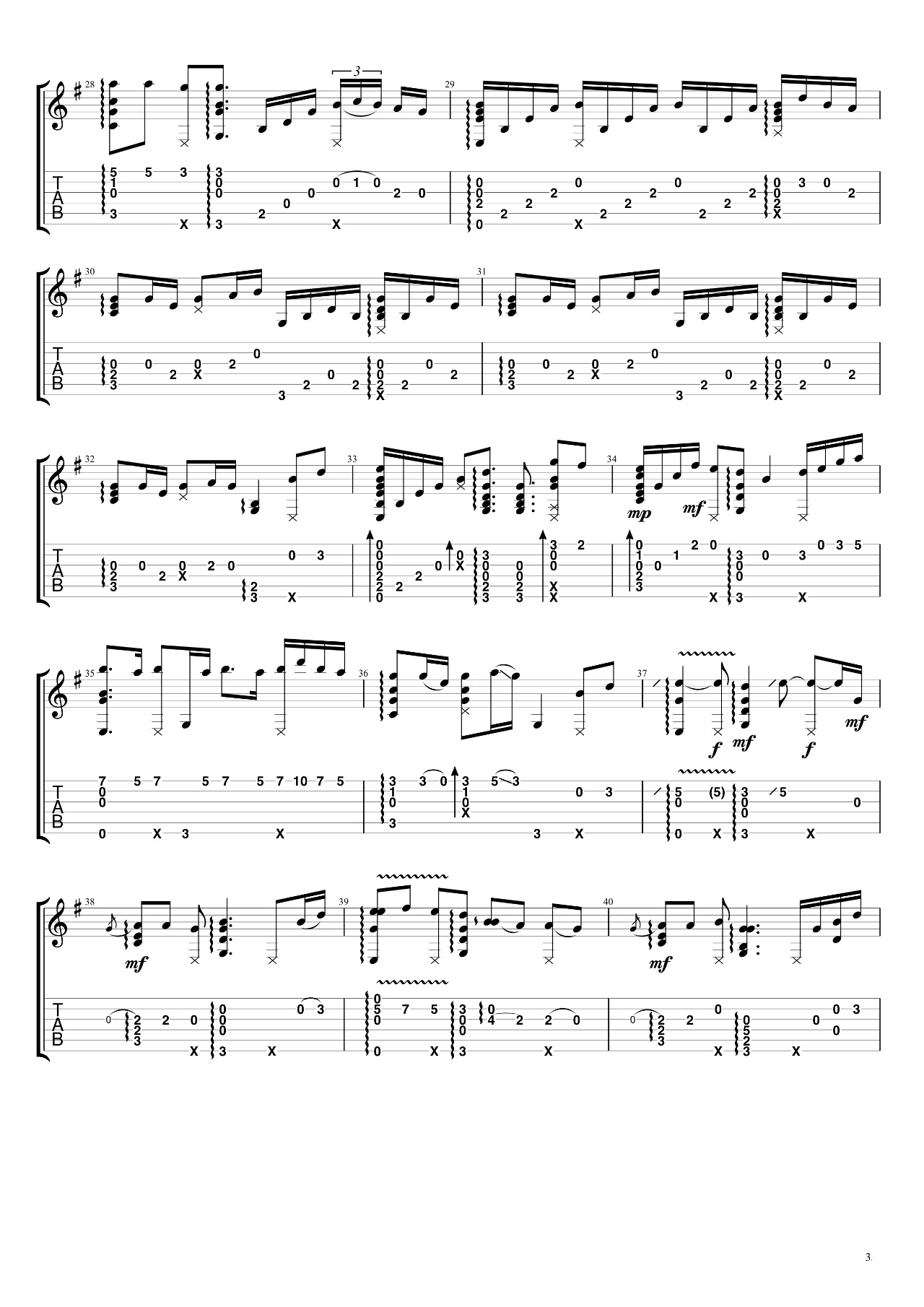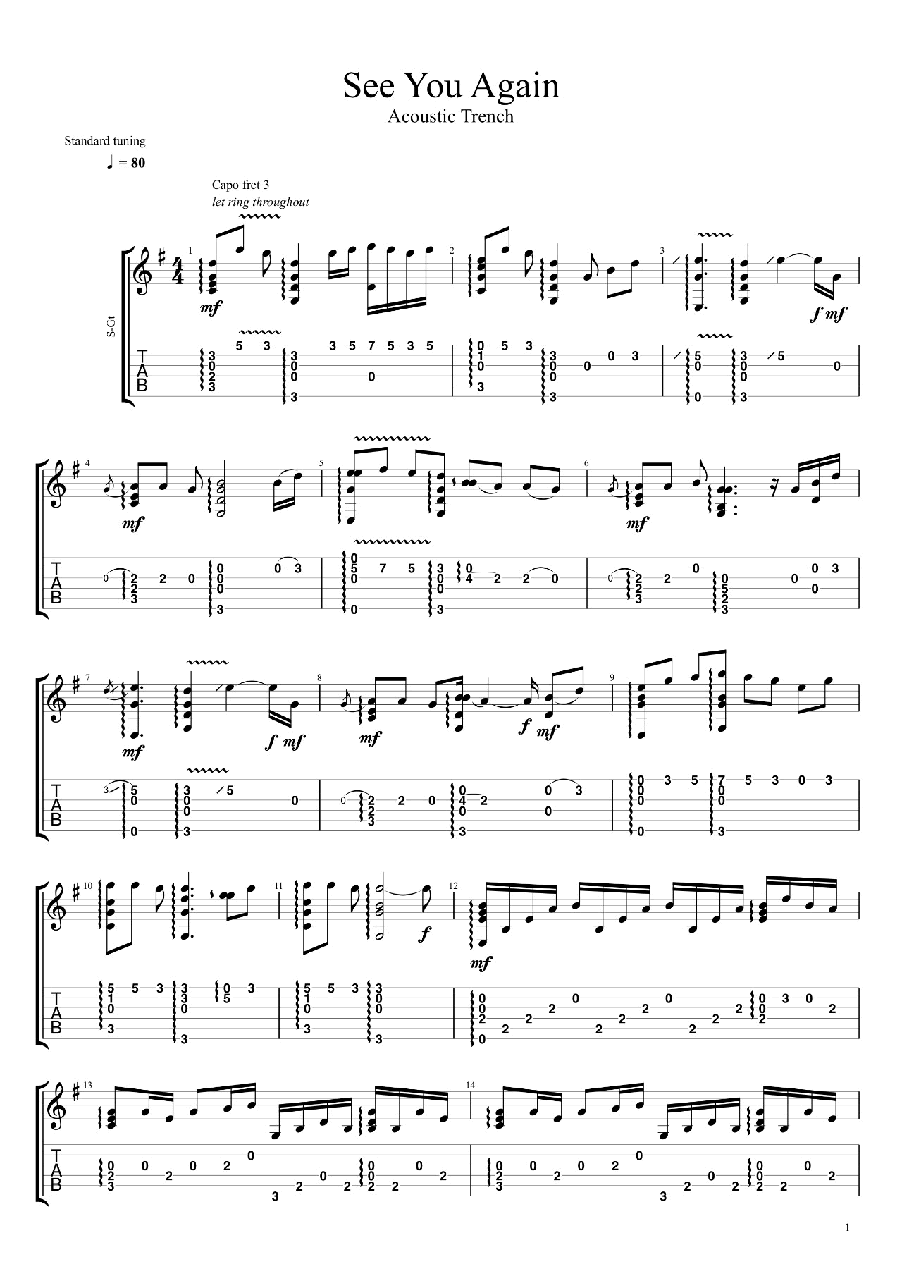 公众号:绵羊乐谱 《See You Again》指弹谱,共有4张高清PNG独奏图片谱例,速度80BPM,变调夹可以夹3-4品处弹奏,随谱下方附有《See You Again》指弹演示视频,可以参考视频结合练习。 公众号:绵羊乐谱 | 官方QQ群:978773290 不吃独食,学会分享!本文链接:http://www.shaomingyang.com/btb/30878.html 转载请标明出处,尊重原创(๑╹◡╹)ノ。如信息有误或版权疑问,请通过网站底部联系我们会第一时间处理,感谢理解支持(◕ᴗ◕✿)!