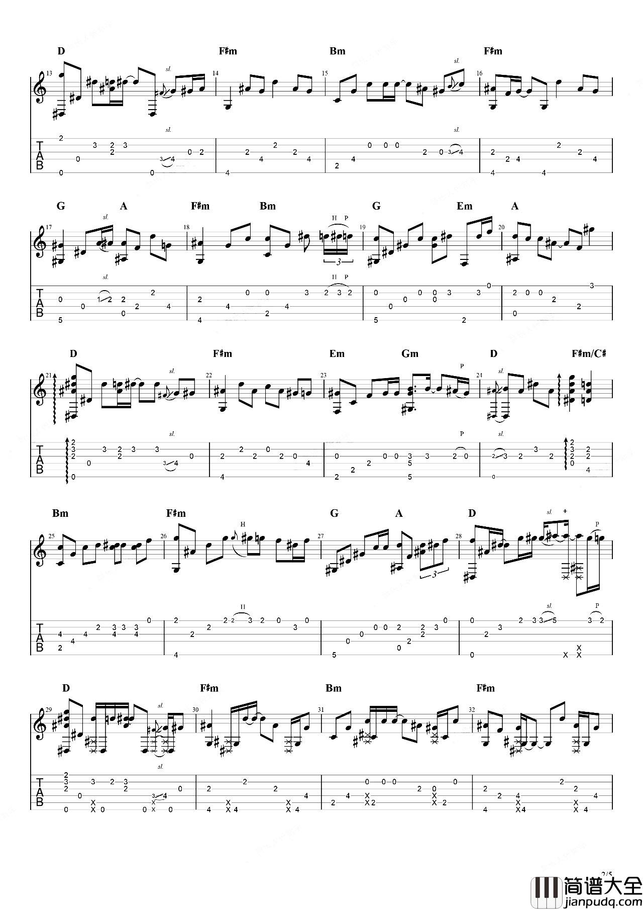 刘若英《后来》指弹吉他谱-图2