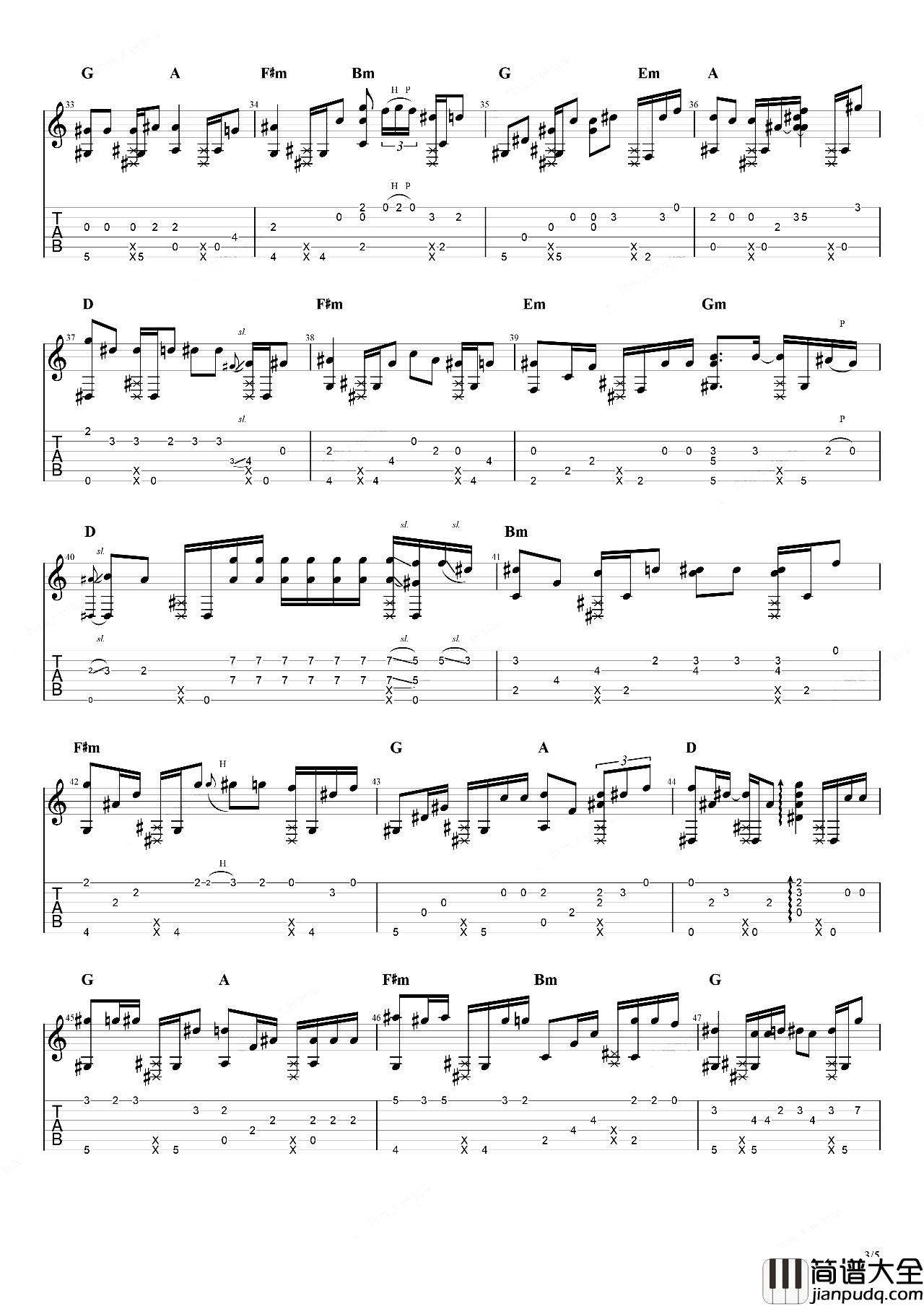 刘若英《后来》指弹吉他谱-图3