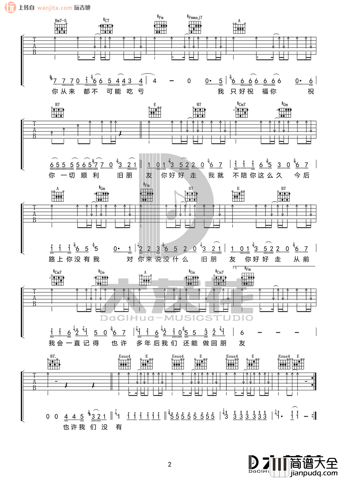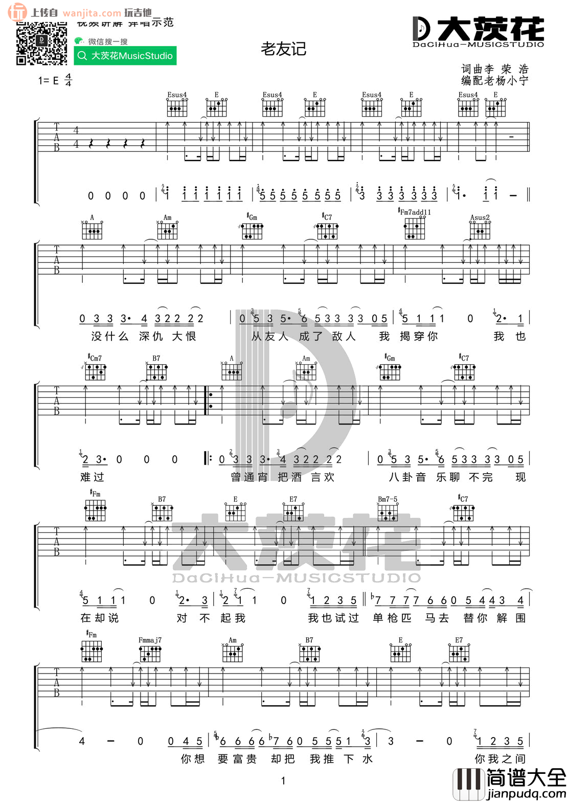 《老友记》吉他谱,原版是略带金属风格,电吉他在歌曲的表现还是十分明显,这个版本由D大大茨花老杨小宁提供编配。原调是E调,同样也是E调指法弹唱。整首歌曲基本上都是扫弦贯穿,所以弹唱的时候,我觉得更应该注意和掌握好右手的节奏,避免扫弦无章法及混乱。