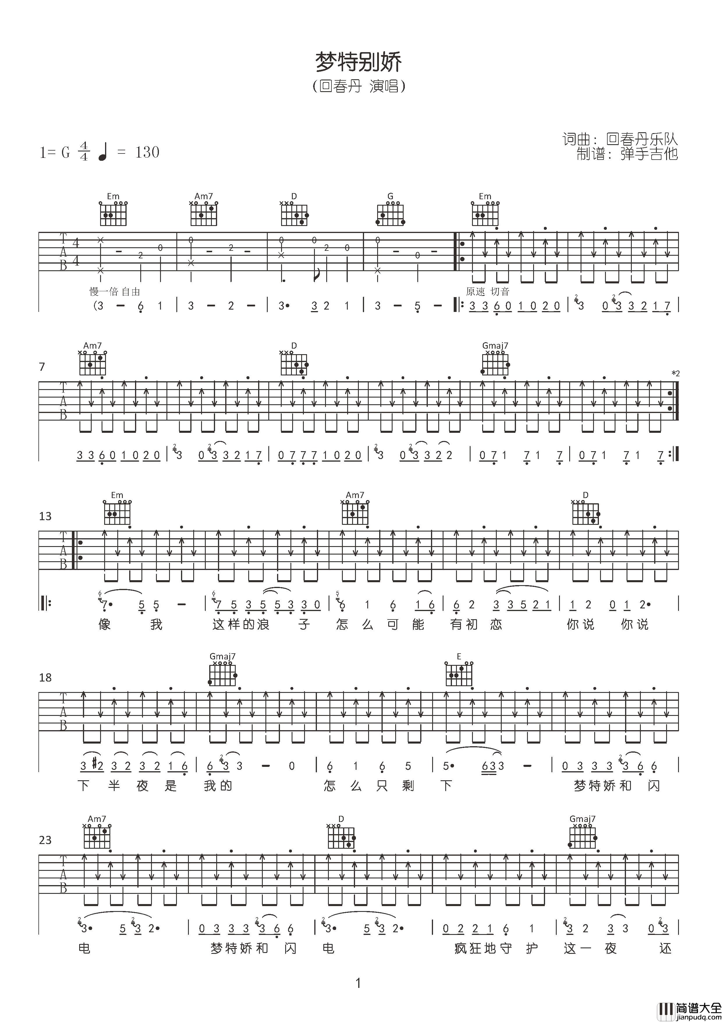 《梦特别娇》吉他谱是由弹手吉他编配制谱,总共3张高清图片谱,选用G调指法,弹唱难度适中,本首曲谱的关键点就在于扫弦切音的技巧掌握,作为吉他独奏弹唱,版本还原度还算不错,推荐大家试弹练习。