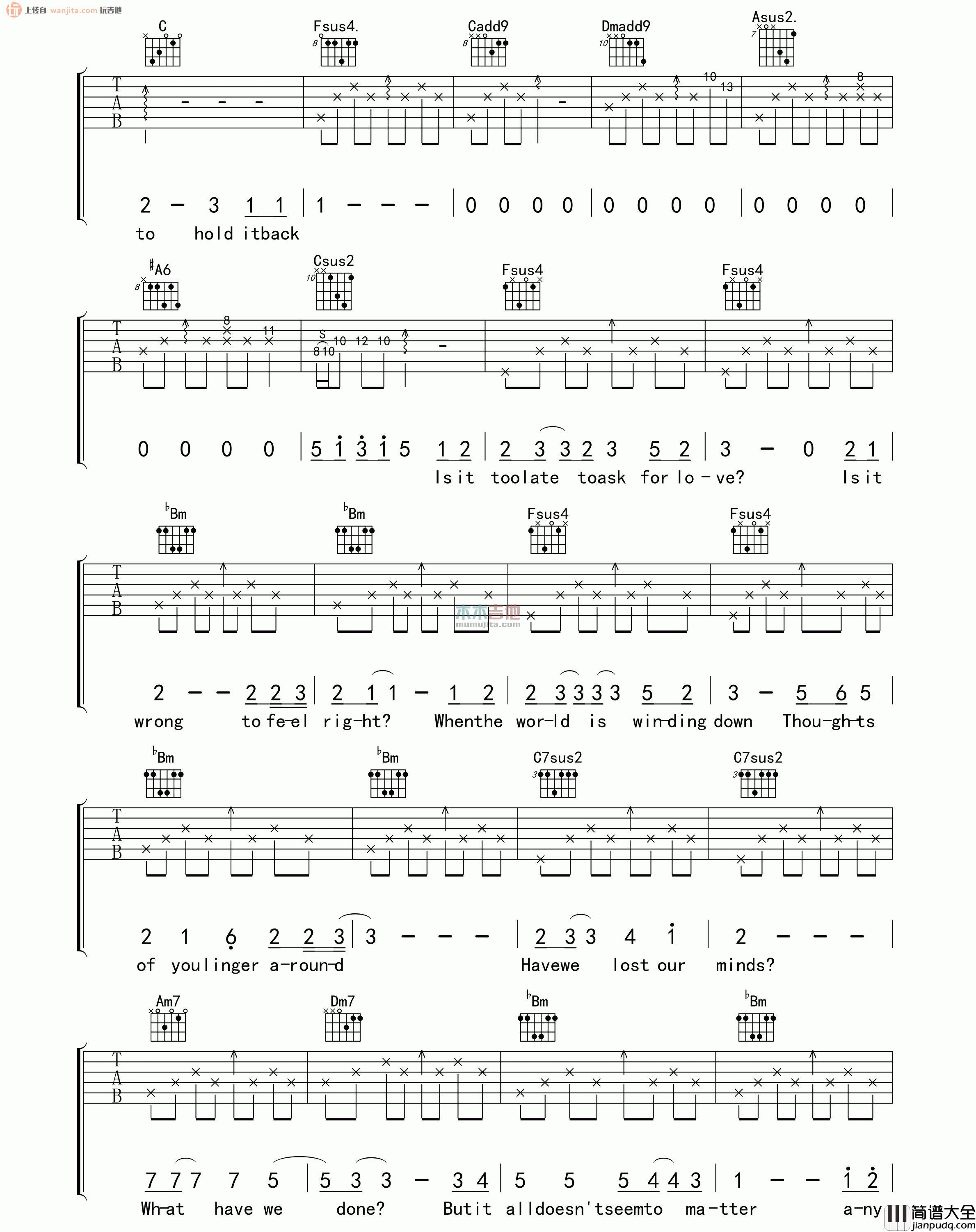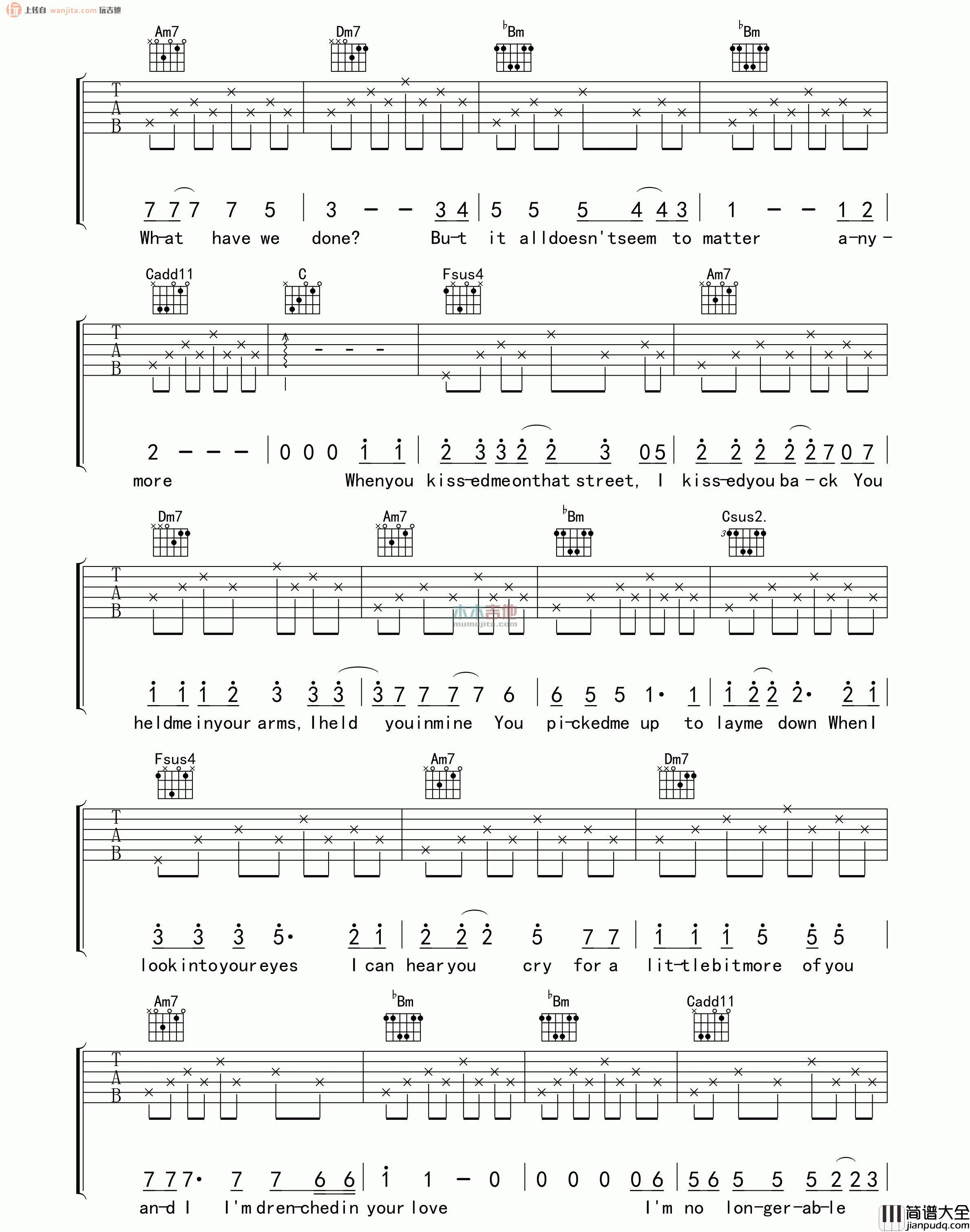 《Drenched》吉他谱,升调为F调,变调夹夹1品。这首十分好听的歌曲在弹唱上的难度也是可见一斑,有一定的难度,不适合新手;练习,大家练习的时候要多多注意节奏。
