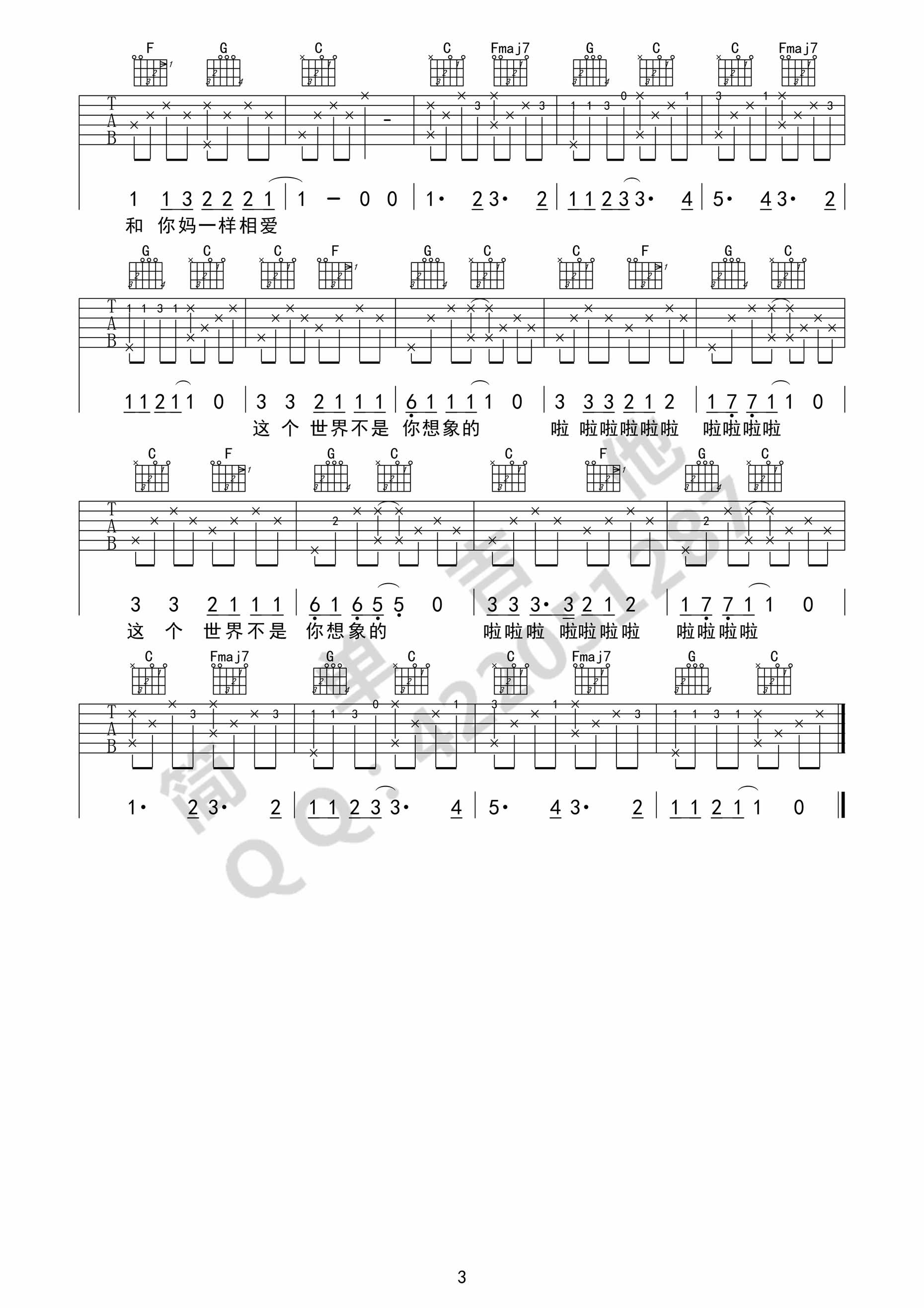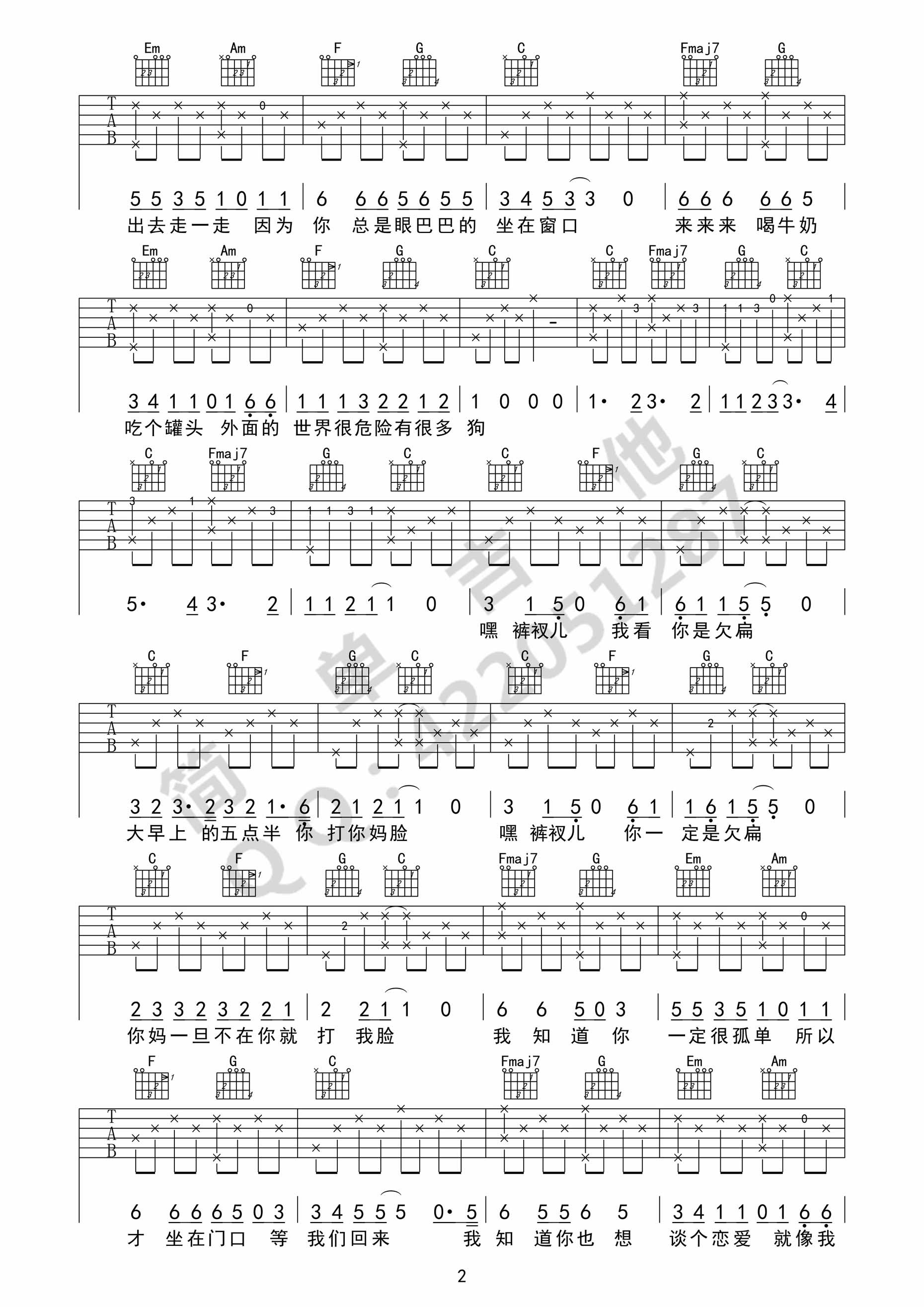本文题目 嘿,裤衩儿吉他谱 宋冬野 吉他图片谱3张 ,本文网址