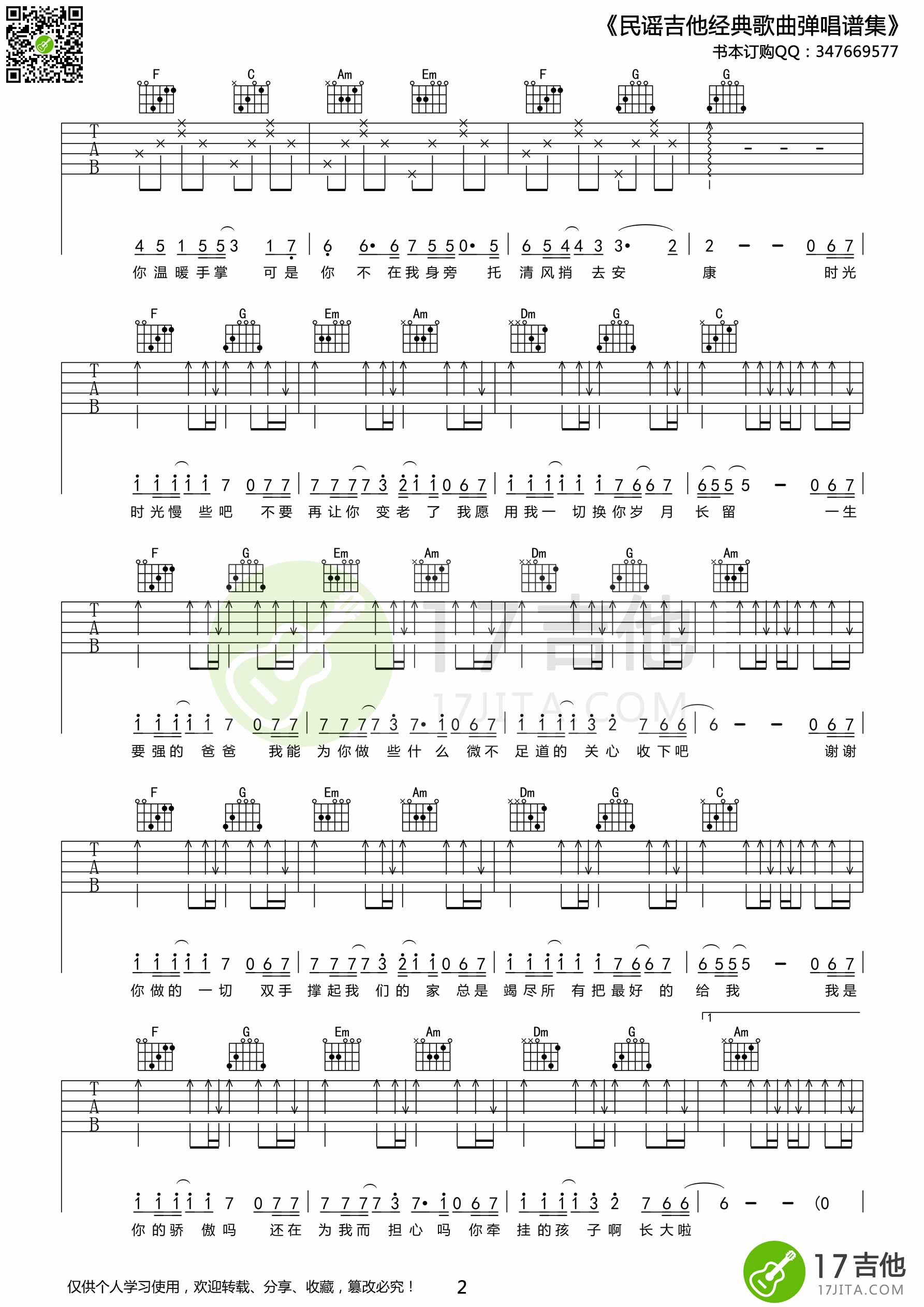 本文题目 筷子兄弟《父亲》吉他谱 筷子兄弟 吉他图片谱3张 ,本文网址