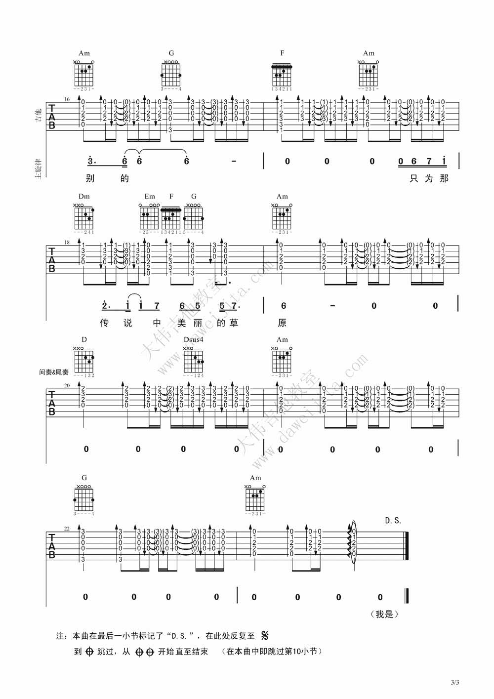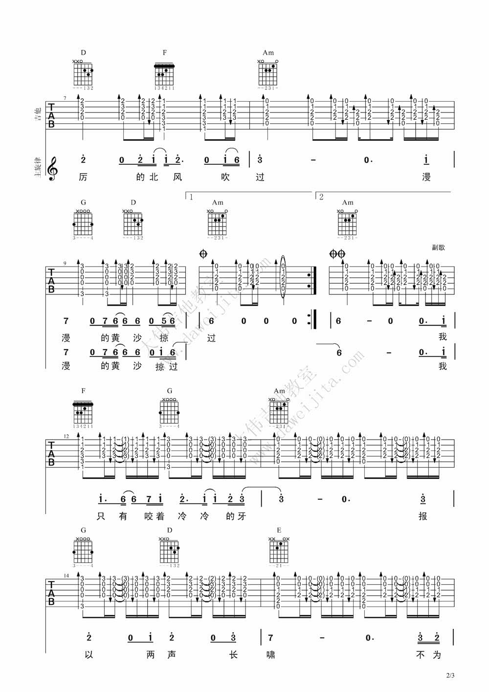 本文题目 齐秦《狼》吉他谱 齐秦 吉他图片谱3张 ,本文网址