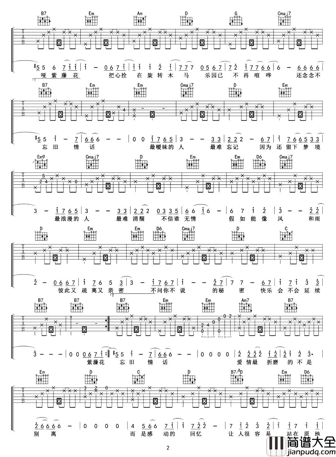 SHE《紫藤花》吉他谱,总共3张高清图片谱,原调bA,选用G调指法,变调夹推荐夹1品弹唱原调,吉他谱按原版编配包含完整前奏,其中包含了拍弦技巧的使用,弹唱难度适中。