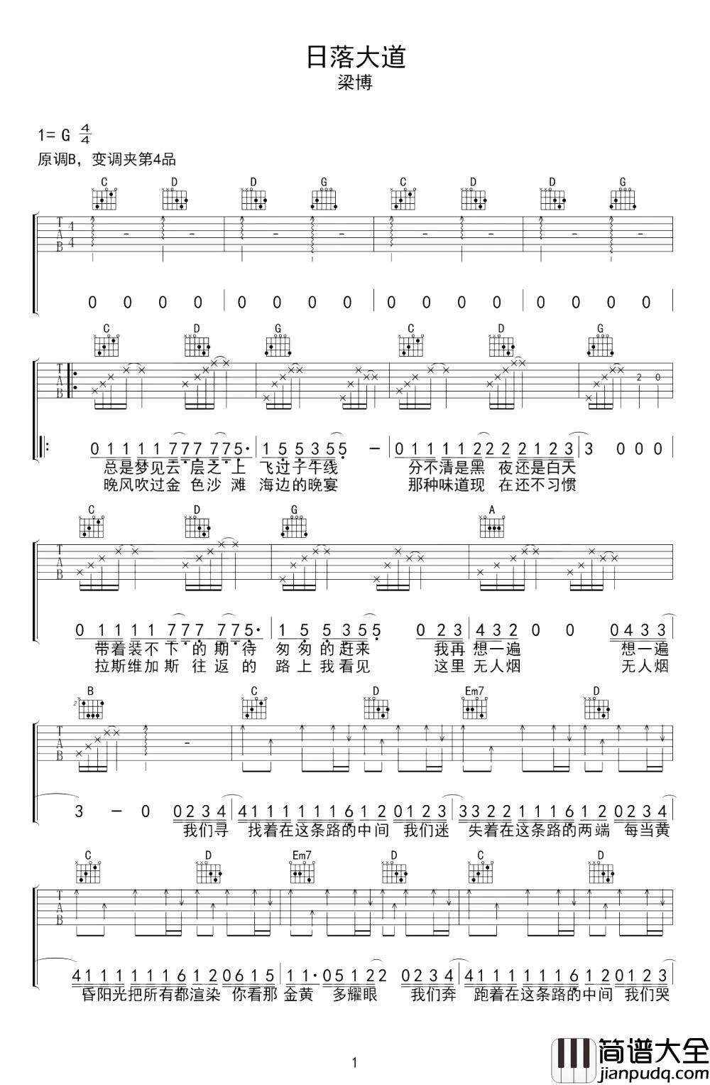 公众号:绵羊乐谱 日落大道吉他谱,梁博词曲创作演唱的一首经典歌曲,温柔平和的旋律,却有着黄昏驾车倘佯在西部公路上的开阔视野。《日落大道》吉他弹唱六线谱,原调B选调G,变调夹夹第四品,两张图片谱例。 公众号:绵羊乐谱 | 官方QQ群:978773290 不吃独食,学会分享!本文链接:http://www.shaomingyang.com/btb/31070.html 转载请标明出处,尊重原创(๑╹◡╹)ノ。如信息有误或版权疑问,请通过网站底部联系我们会第一时间处理,感谢理解支持(◕ᴗ◕✿)!