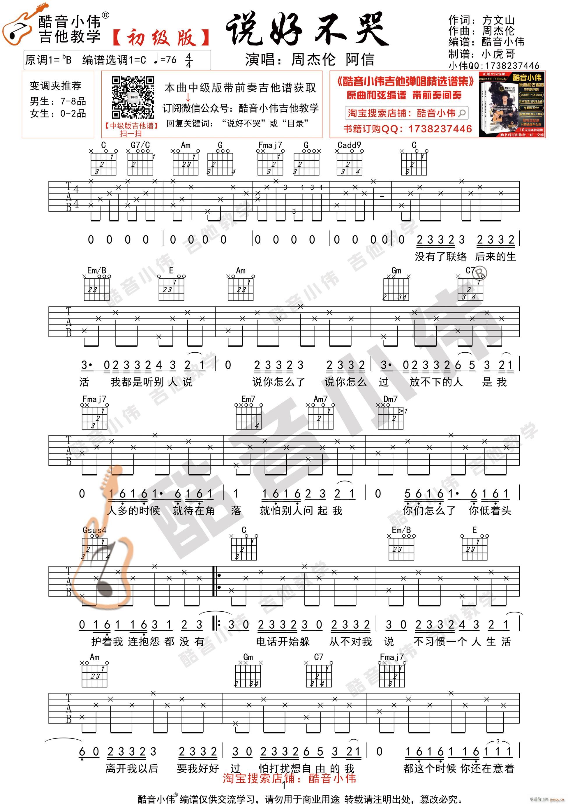 公众号:绵羊乐谱 《说好不哭》 初级版 吉他弹唱教学免费弹唱吉他谱_六线谱/词曲:周杰伦 点击: 1000 图片可能经过缩放,手机长按或点开后长按保存,电脑鼠标右键保存. (酷音小伟) 公众号:绵羊乐谱 | 官方QQ群:978773290 不吃独食,学会分享!本文链接:http://www.shaomingyang.com/btb/31084.html 转载请标明出处,尊重原创(๑╹◡╹)ノ。如信息有误或版权疑问,请通过网站底部联系我们会第一时间处理,感谢理解支持(◕ᴗ◕✿)!