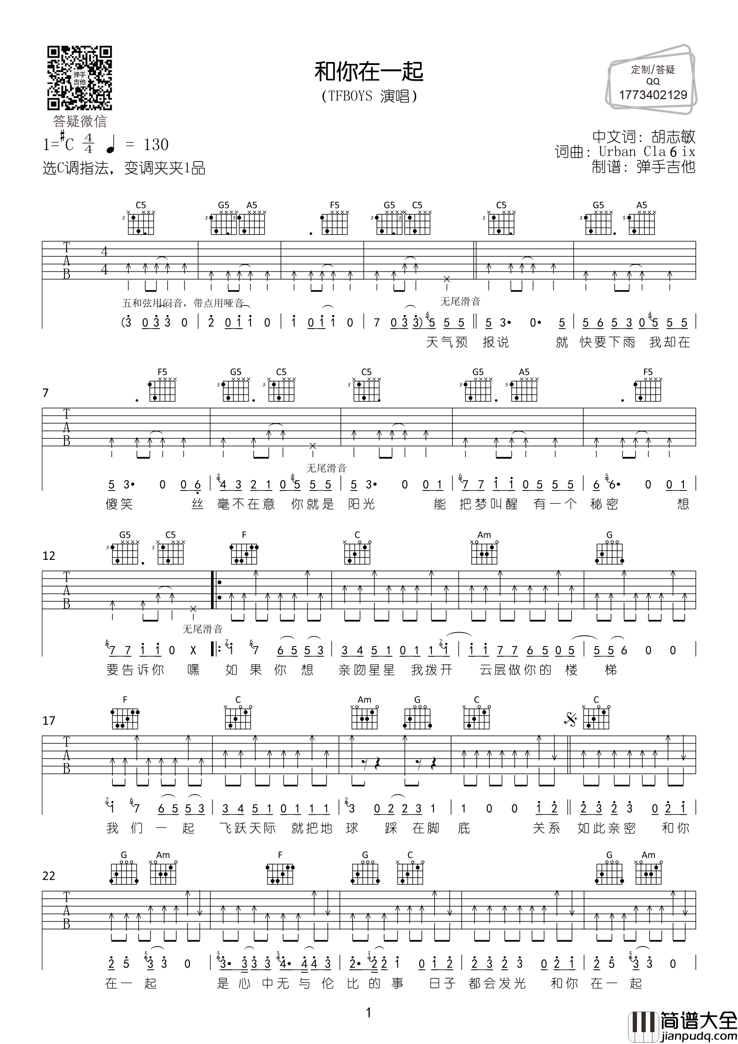 公众号:绵羊乐谱 《和你在一起》吉他弹唱谱,总共3页高清图片谱,主要以扫弦节奏为右手节奏型,和弦变化不多,但指法跨度略微有难度,感兴趣的朋友可以先行试探 公众号:绵羊乐谱 | 官方QQ群:978773290 不吃独食,学会分享!本文链接:http://www.shaomingyang.com/btb/31101.html 转载请标明出处,尊重原创(๑╹◡╹)ノ。如信息有误或版权疑问,请通过网站底部联系我们会第一时间处理,感谢理解支持(◕ᴗ◕✿)!