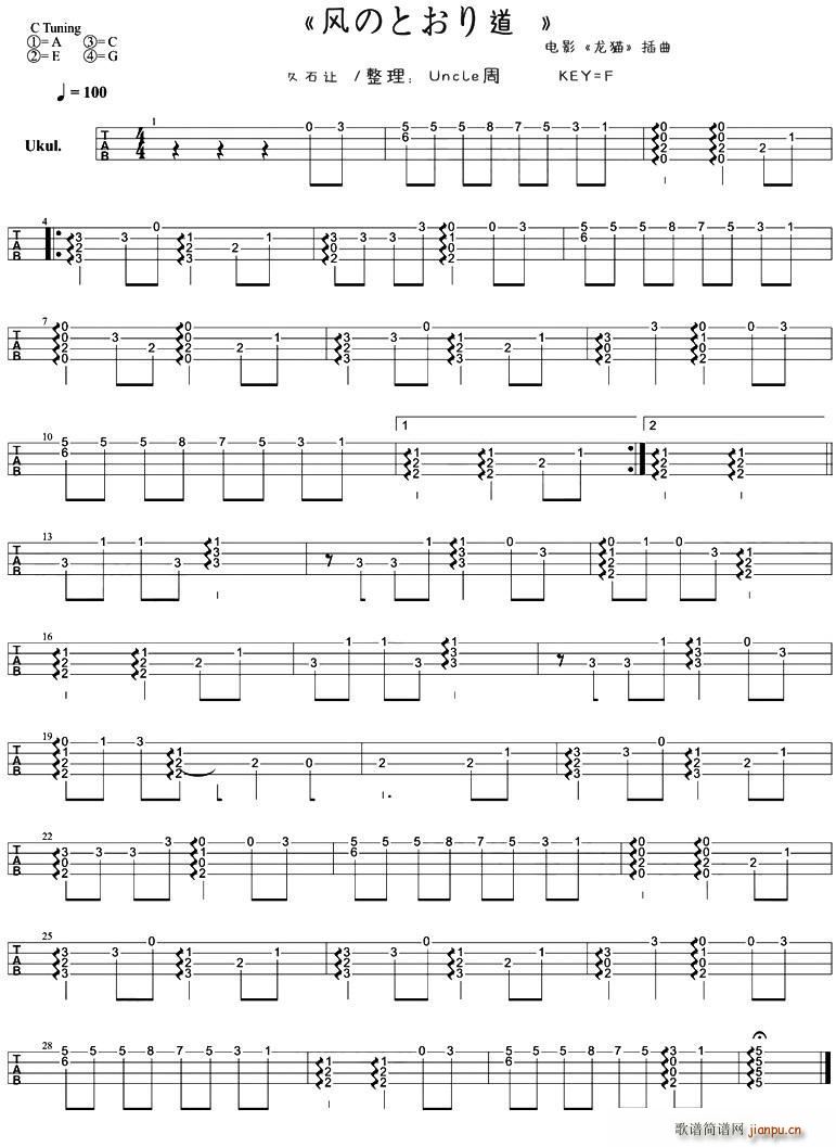 公众号:绵羊乐谱 风之甬道(尤克里里指弹谱)免费弹唱吉他谱_六线谱/词曲:久石让 点击: 1000 图片可能经过缩放,手机长按或点开后长按保存,电脑鼠标右键保存. (网络) 公众号:绵羊乐谱 | 官方QQ群:978773290 不吃独食,学会分享!本文链接:http://www.shaomingyang.com/btb/31180.html 转载请标明出处,尊重原创(๑╹◡╹)ノ。如信息有误或版权疑问,请通过网站底部联系我们会第一时间处理,感谢理解支持(◕ᴗ◕✿)!