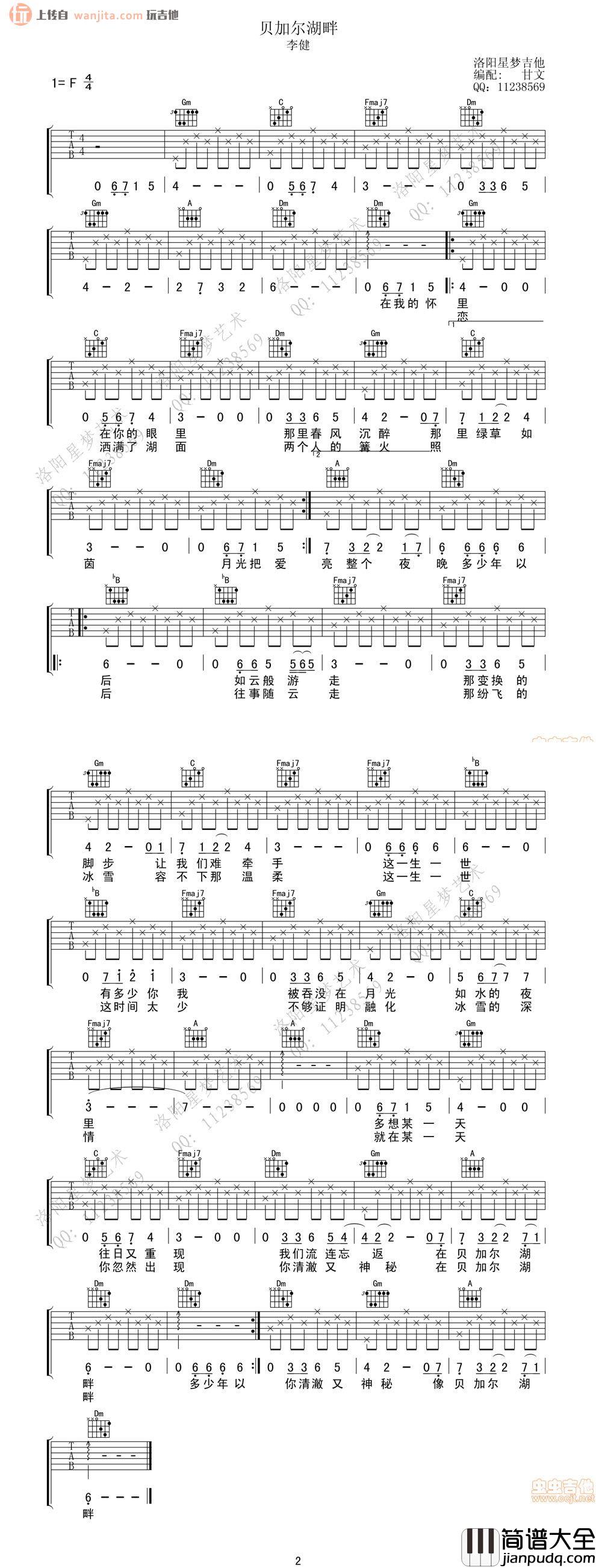 李健《贝加尔湖畔》吉他谱,总共1张高清图片谱,选用F调指法,节拍4/4拍,不使用变调夹,弹唱难度初级。