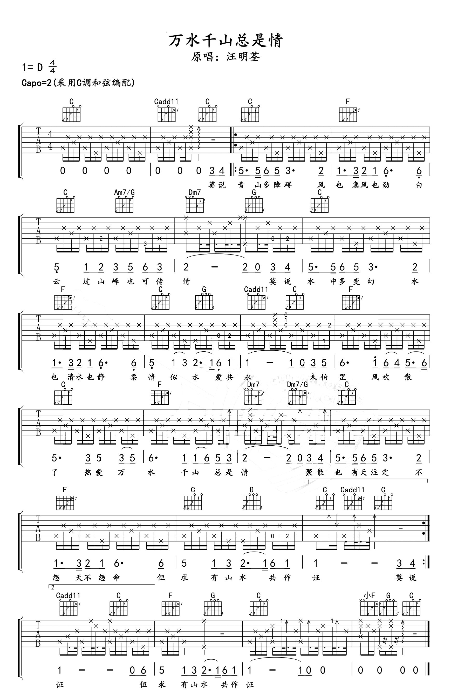 公众号:绵羊乐谱 汪明荃的一首经典粤语歌曲,也是八十年代风靡大江南北的香港同名电视剧主题曲。万水千山总是情吉他谱,采用C和弦编配,高清图片六线谱。 公众号:绵羊乐谱 | 官方QQ群:978773290 不吃独食,学会分享!本文链接:http://www.shaomingyang.com/btb/31203.html 转载请标明出处,尊重原创(๑╹◡╹)ノ。如信息有误或版权疑问,请通过网站底部联系我们会第一时间处理,感谢理解支持(◕ᴗ◕✿)!