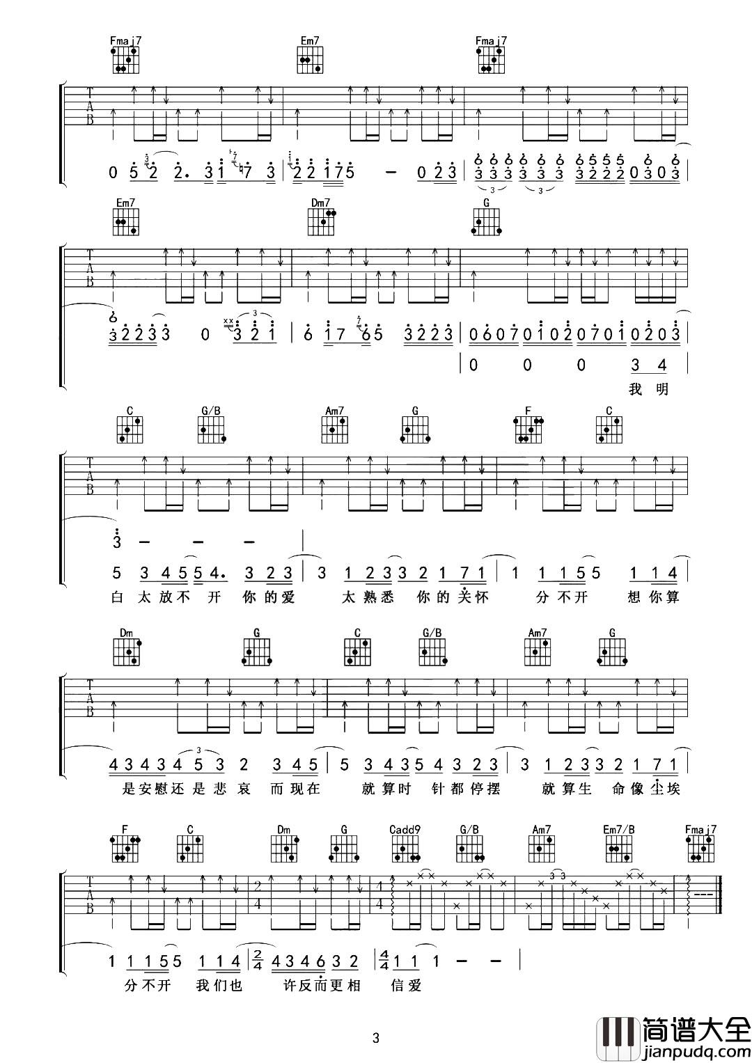 公众号:绵羊乐谱 《忽然之间》吉他弹唱教学视频 忽然之间吉他弹唱谱,原调D调,选用C调,变调夹夹2品。和弦不难,节奏也不算太难,新手也可以很好的弹出这首感情饱满的歌曲,需要很深情的演绎,这首歌曲的感情是最让人动容的部分,所以推荐大家学习这首纪念历史的歌曲。 公众号:绵羊乐谱 | 官方QQ群:978773290 不吃独食,学会分享!本文链接:http://www.shaomingyang.com/btb/31245.html 转载请标明出处,尊重原创(๑╹◡╹)ノ。如信息有误或版权疑问,请通过网站底部联系我们会第一时间处理,感谢理解支持(◕ᴗ◕✿)!