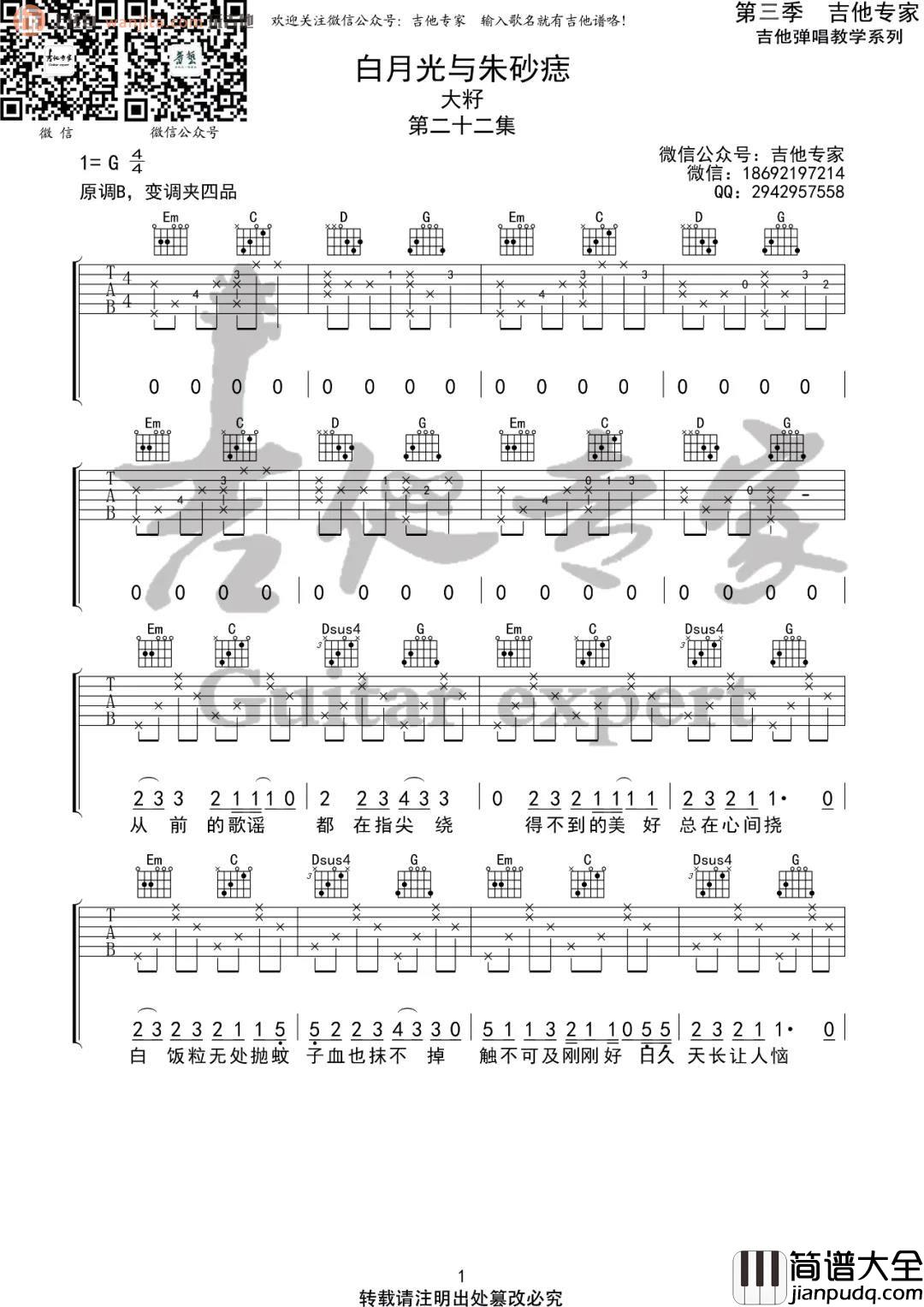 《白月光与朱砂痣》吉他谱,由吉他专家制谱,总共3张高清图片谱例,这首歌曲原调是选用B调,由吉他专家制谱,选用G调指法,变调夹夹4品弹唱原调,难度适中,有些技巧变化需要注意一下,如果想尝试更简单的版本,可以选择吉他专家编配的另一首C调版本。
