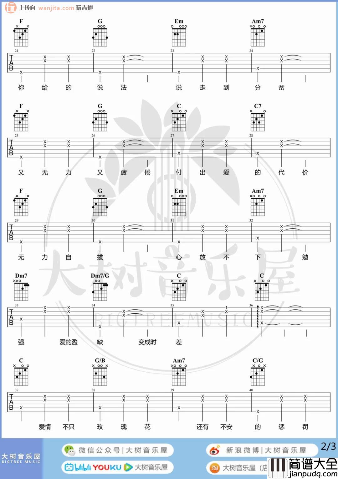这首曲谱由大树吉他音乐屋制谱编配,并提供了吉他弹唱演示的视频,总共3张高清图片谱,原调是E调,选用C调指法编配,视频中为标准调音,变调夹夹的2品弹唱,当然也可以根据自己的情况夹4品弹唱原调,总之这首歌曲是非常适合吉他弹唱的一首歌曲,感兴趣的朋友可以先参考视频再练习噢~!