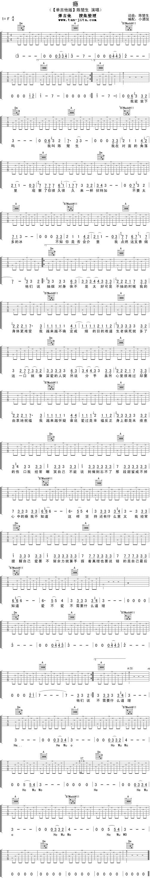 公众号:绵羊乐谱 《瘾》吉他谱,由小酒馆制谱编配,F调指法,弹唱难度不大,简单的分解和弦,但还原了原版的基调。 公众号:绵羊乐谱 | 官方QQ群:978773290 不吃独食,学会分享!本文链接:http://www.shaomingyang.com/btb/31273.html 转载请标明出处,尊重原创(๑╹◡╹)ノ。如信息有误或版权疑问,请通过网站底部联系我们会第一时间处理,感谢理解支持(◕ᴗ◕✿)!