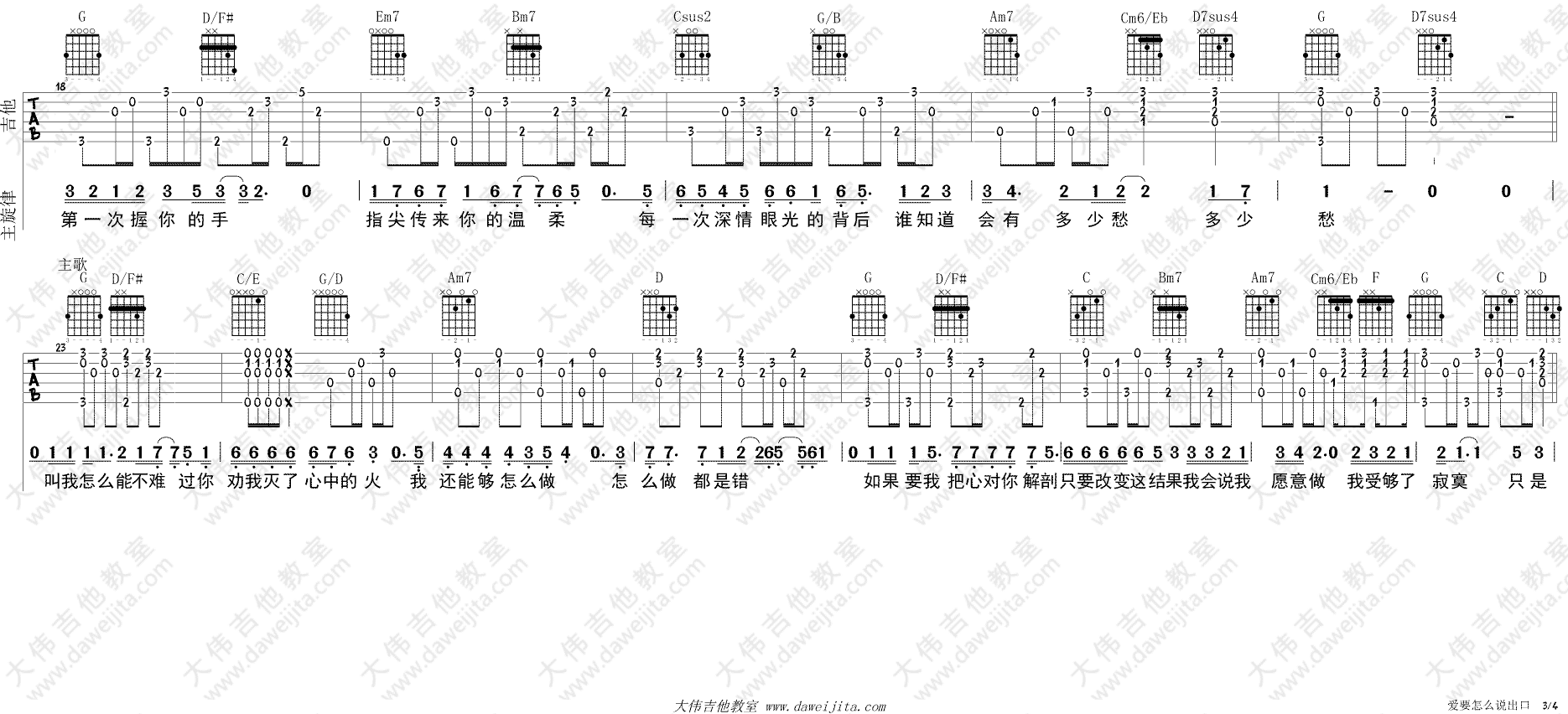 《爱要怎么说出口》吉他谱原调G调,变调夹夹1品,女生建议夹五品,使用了23种和弦。这首歌曲难度属于中等,适合进阶练习,大家在学习的时候要注意这首歌地间奏和前奏,多多练习。