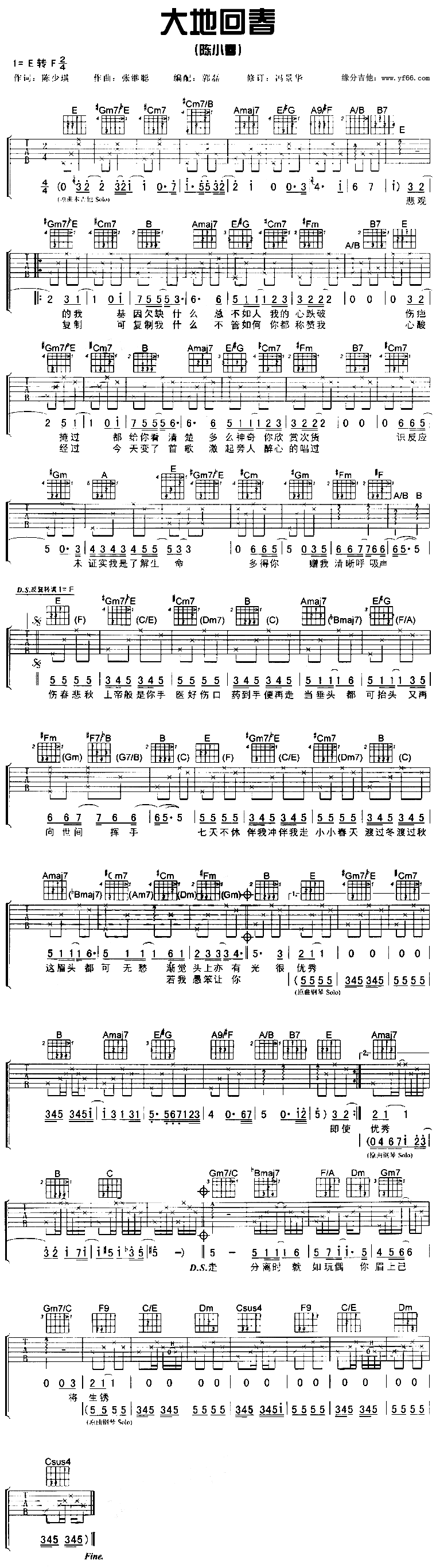 公众号:绵羊乐谱 《大地回春》吉他谱,总共1张高清图片谱,选用E调转F调,节拍2/4拍,不使用变调夹,弹唱难度初级。 公众号:绵羊乐谱 | 官方QQ群:978773290 不吃独食,学会分享!本文链接:http://www.shaomingyang.com/btb/31371.html 转载请标明出处,尊重原创(๑╹◡╹)ノ。如信息有误或版权疑问,请通过网站底部联系我们会第一时间处理,感谢理解支持(◕ᴗ◕✿)!