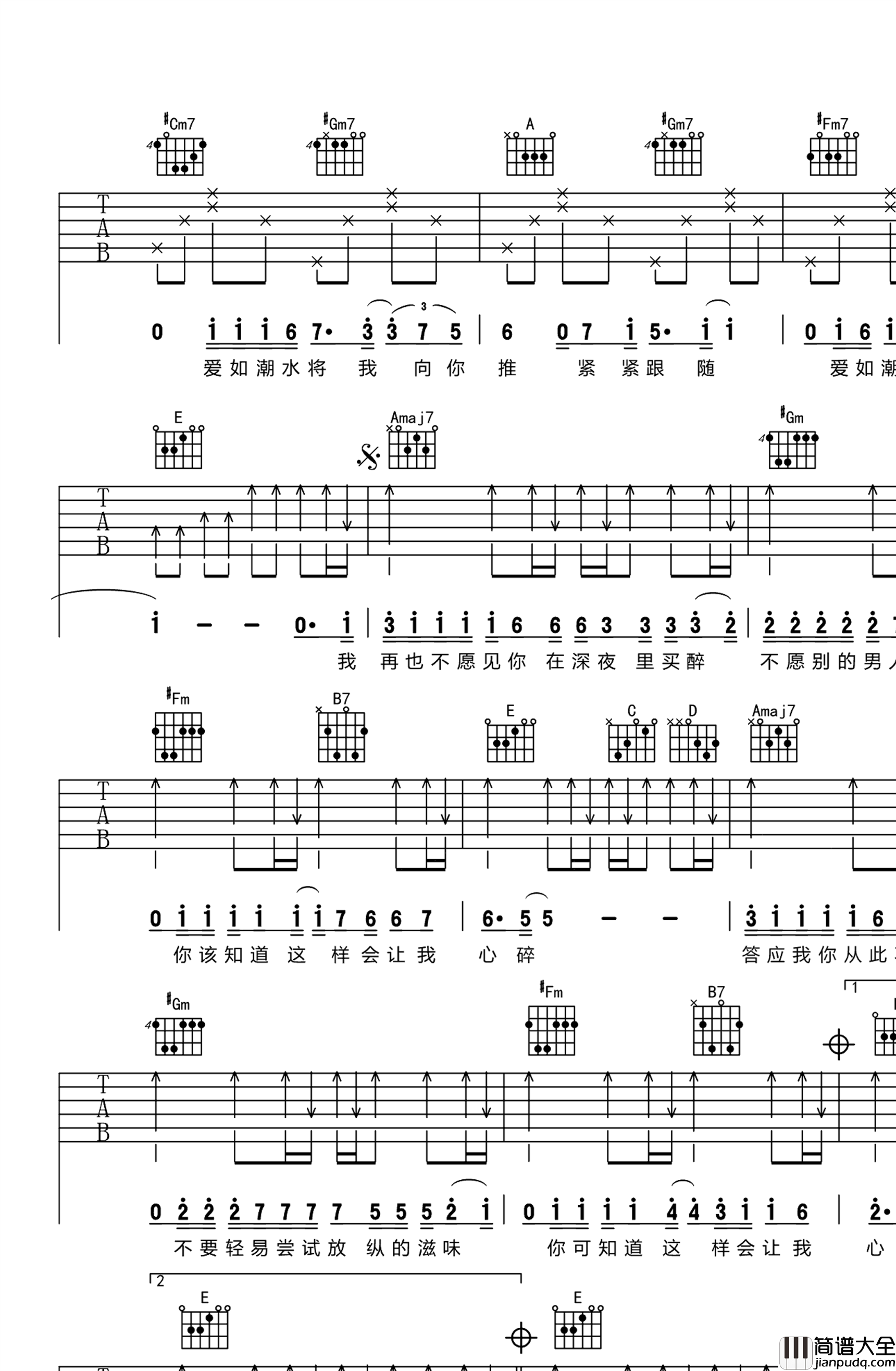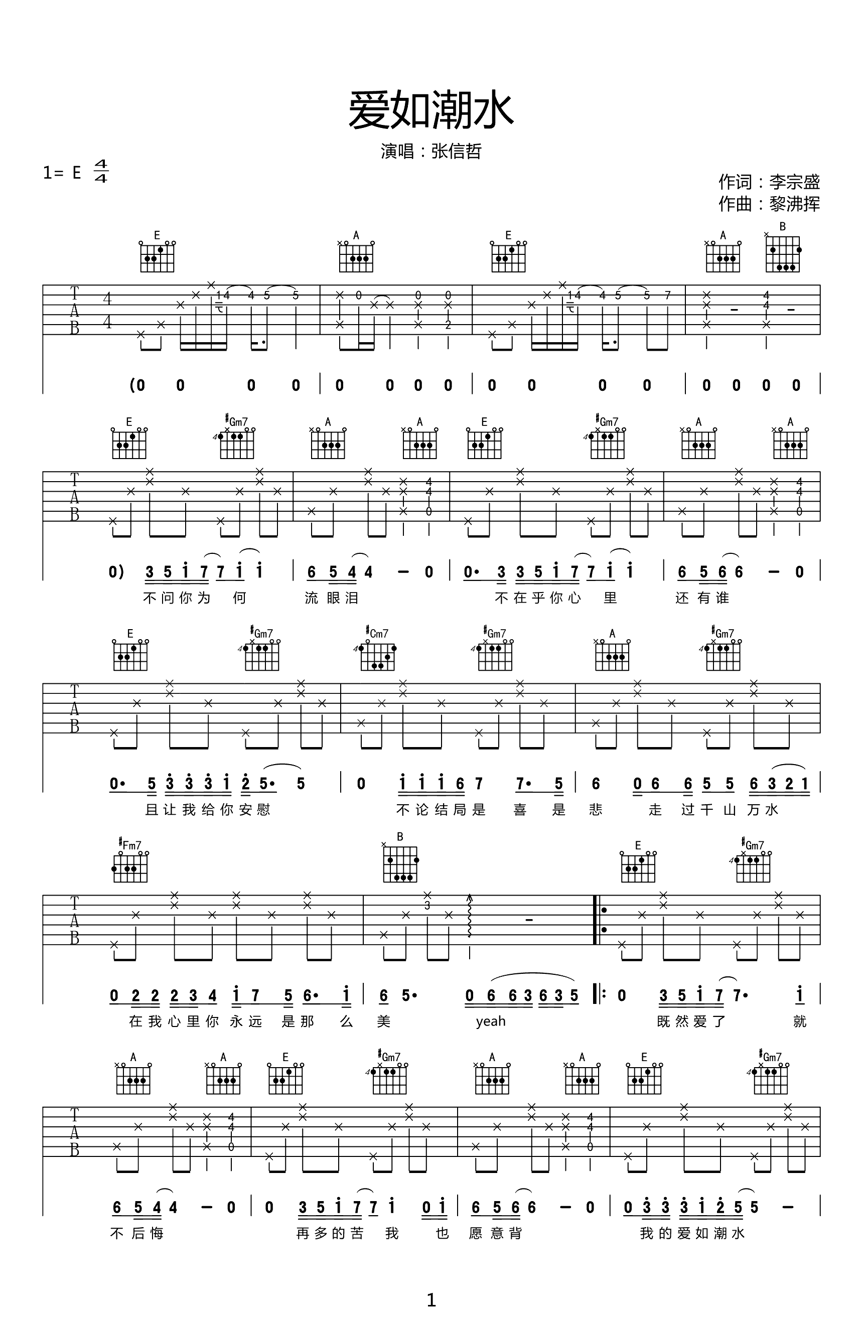 公众号:绵羊乐谱 张信哲的代表作品,曲风哀婉的华语歌坛经典情歌。爱如潮水吉他谱,选用原调E调编配,《爱如潮水》吉他弹唱六线谱,两张高清图片谱。 公众号:绵羊乐谱 | 官方QQ群:978773290 不吃独食,学会分享!本文链接:http://www.shaomingyang.com/btb/31415.html 转载请标明出处,尊重原创(๑╹◡╹)ノ。如信息有误或版权疑问,请通过网站底部联系我们会第一时间处理,感谢理解支持(◕ᴗ◕✿)!