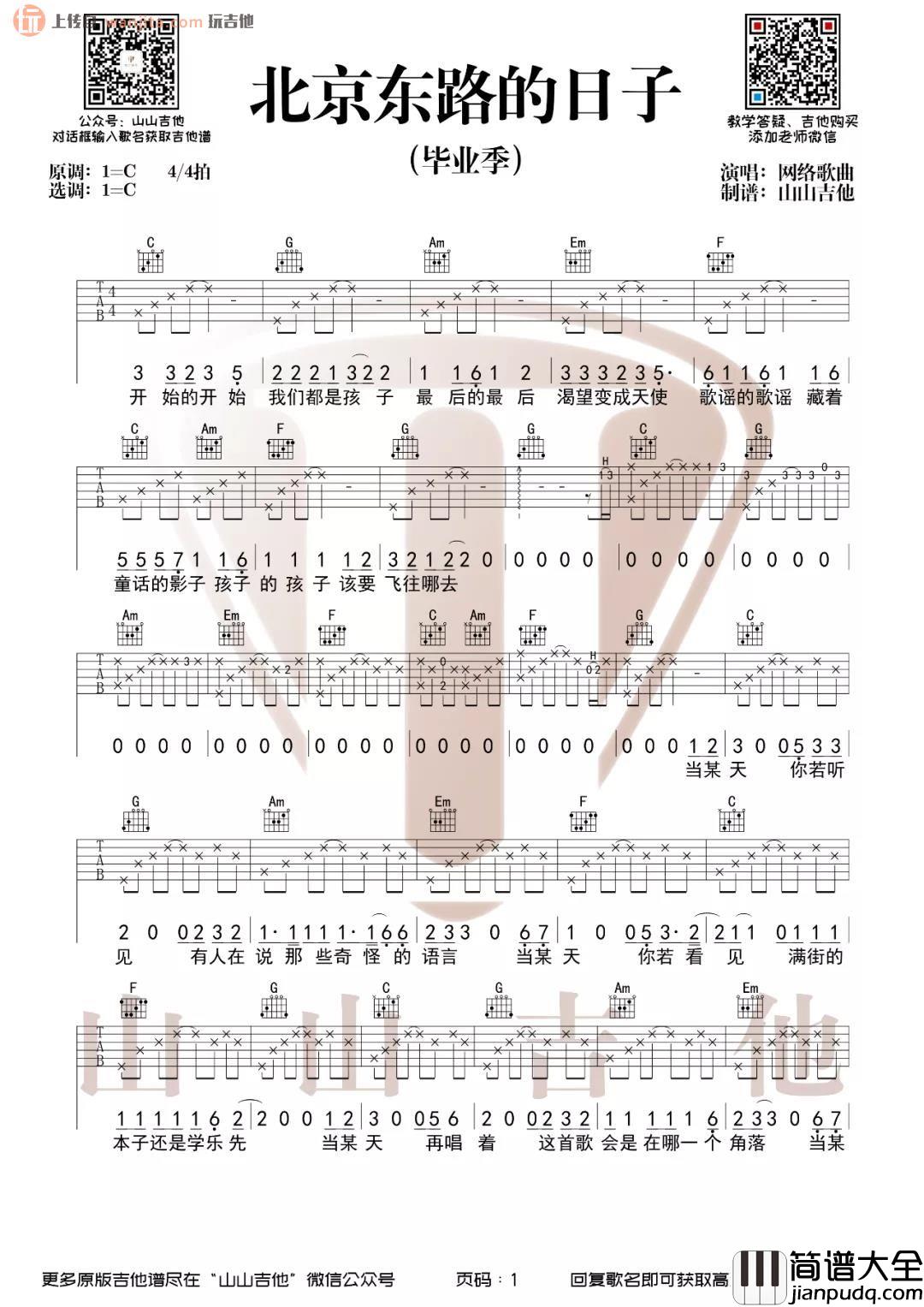 公众号:绵羊乐谱 这首曲谱原调是C调,也是选用C调,由山山吉他编配制谱,总共2张高清图片谱,校园民谣的弹唱风格,简单的分解和弦配合标准的扫弦弹唱,整体难度不大,同学们可以参考下方的视频配合练习哦。 《北京东路的日子》吉他弹唱演示 公众号:绵羊乐谱 | 官方QQ群:978773290 不吃独食,学会分享!本文链接:http://www.shaomingyang.com/btb/31419.html 转载请标明出处,尊重原创(๑╹◡╹)ノ。如信息有误或版权疑问,请通过网站底部联系我们会第一时间处理,感谢理解支持(◕ᴗ◕✿)!