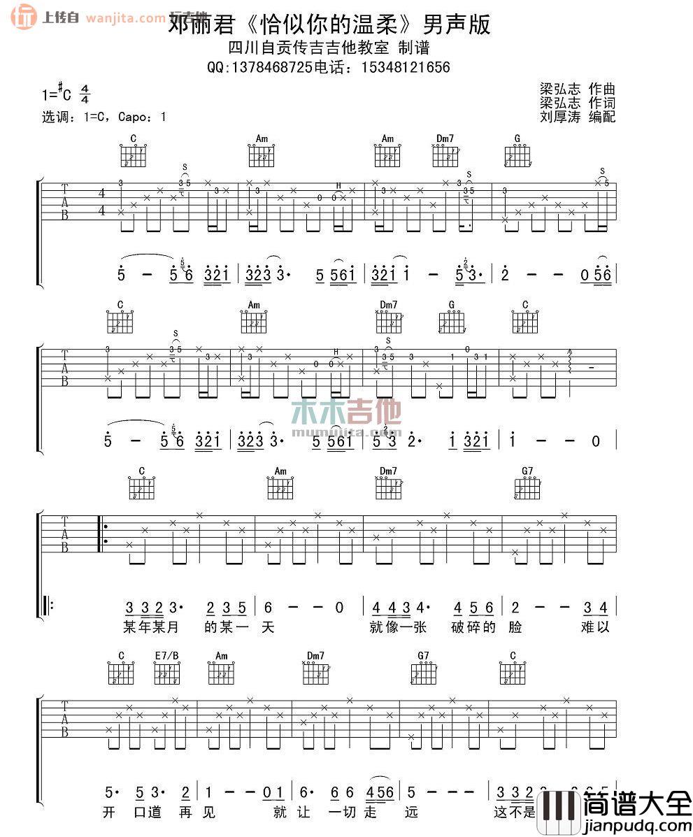 《恰似你的温柔》吉他谱C调,不使用变调夹,由刘厚涛编排。这个版本的吉他谱是男生版,舒缓的前奏带给人经典的享受,吉他弹唱是这首歌曲更富感染力。