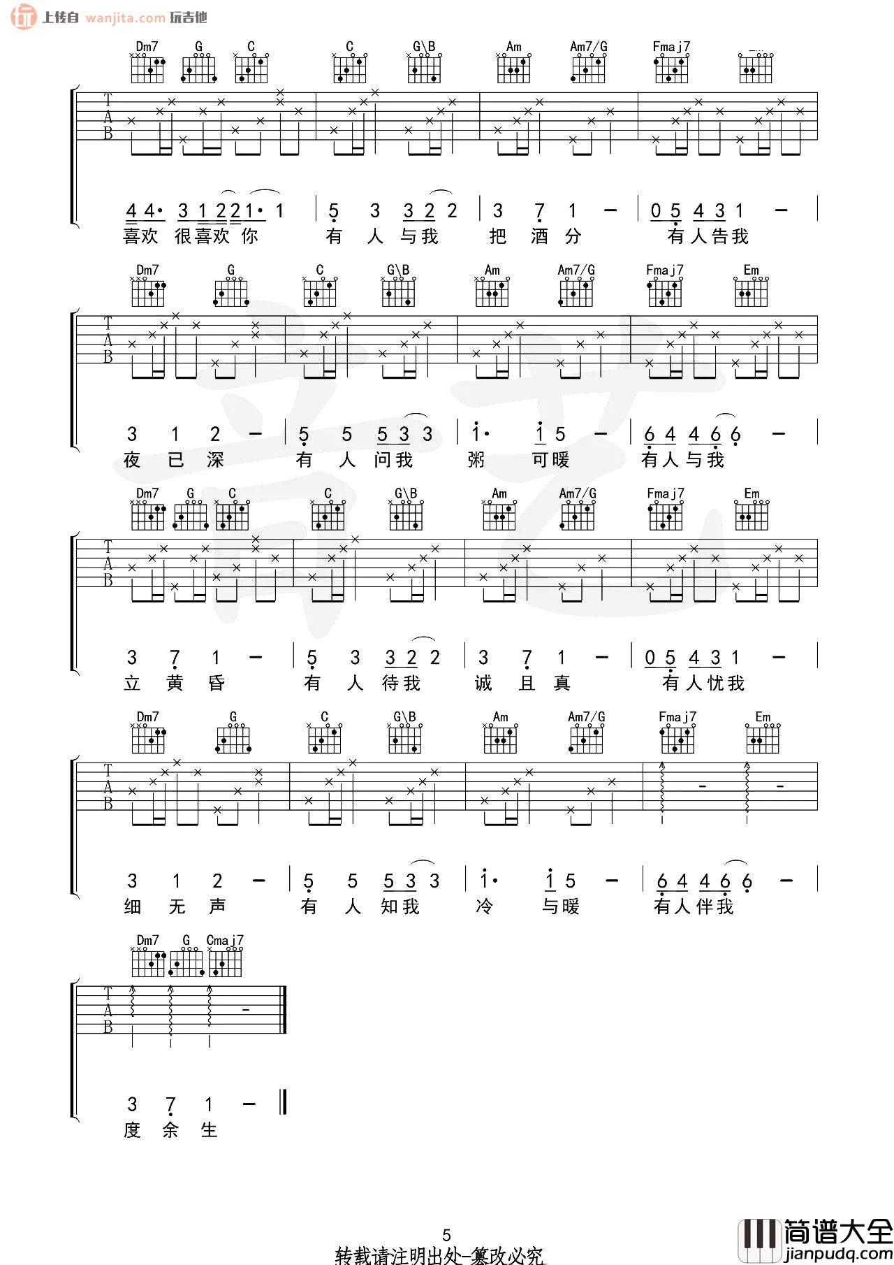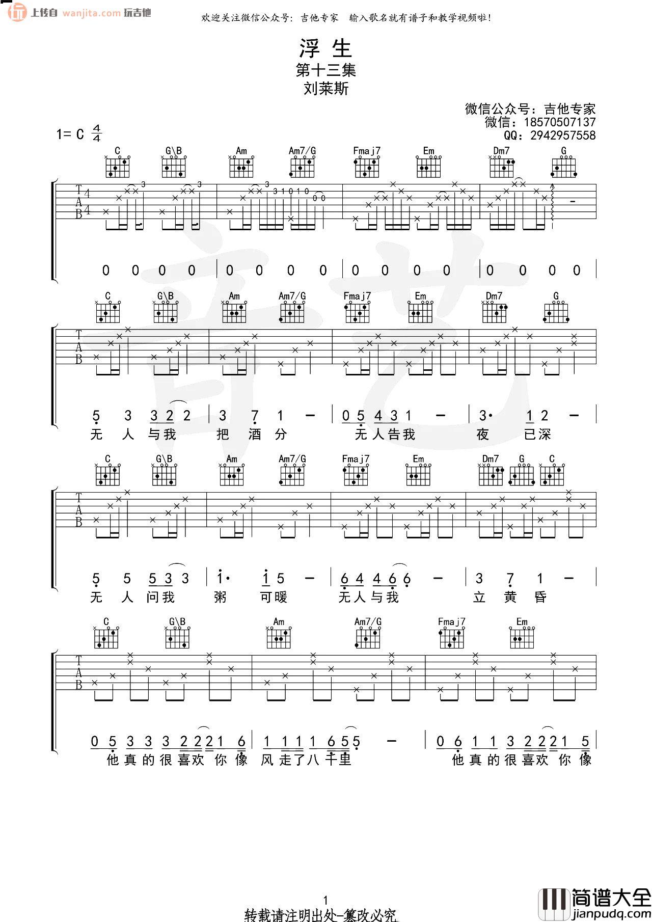 公众号:绵羊乐谱 《浮生》吉他弹唱谱,总共5张高清图片谱,选用C调,不使用变调夹。这首歌曲的弹唱难度属于中等,新手不建议学习,适合进阶的老哥们你练习和学习,这首歌曲唱起来也是比较简单的,歌词很有意思,值得学习的一首民谣。 公众号:绵羊乐谱 | 官方QQ群:978773290 不吃独食,学会分享!本文链接:http://www.shaomingyang.com/btb/31437.html 转载请标明出处,尊重原创(๑╹◡╹)ノ。如信息有误或版权疑问,请通过网站底部联系我们会第一时间处理,感谢理解支持(◕ᴗ◕✿)!