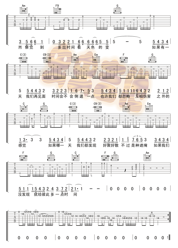 梁静茹《如果有一天》吉他谱,总共2张高清图片谱,选用C调,节拍4/4拍,不使用变调夹,弹唱难度初级。