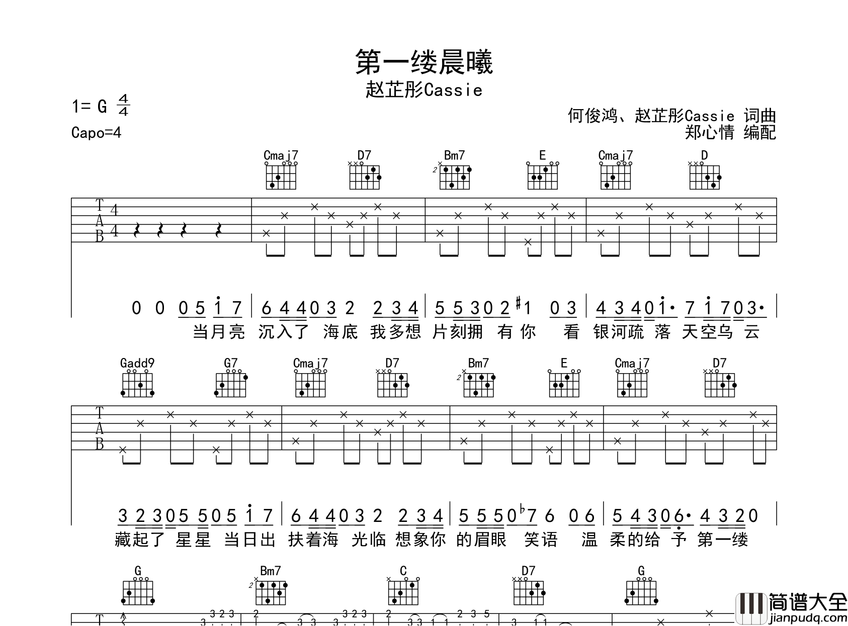 公众号:绵羊乐谱 《第一缕晨曦》总共2张高清图片谱,G调指法编配,建议变调夹夹4品可以弹唱原调,弹唱难度简单。 公众号:绵羊乐谱 | 官方QQ群:978773290 不吃独食,学会分享!本文链接:http://www.shaomingyang.com/btb/31476.html 转载请标明出处,尊重原创(๑╹◡╹)ノ。如信息有误或版权疑问,请通过网站底部联系我们会第一时间处理,感谢理解支持(◕ᴗ◕✿)!