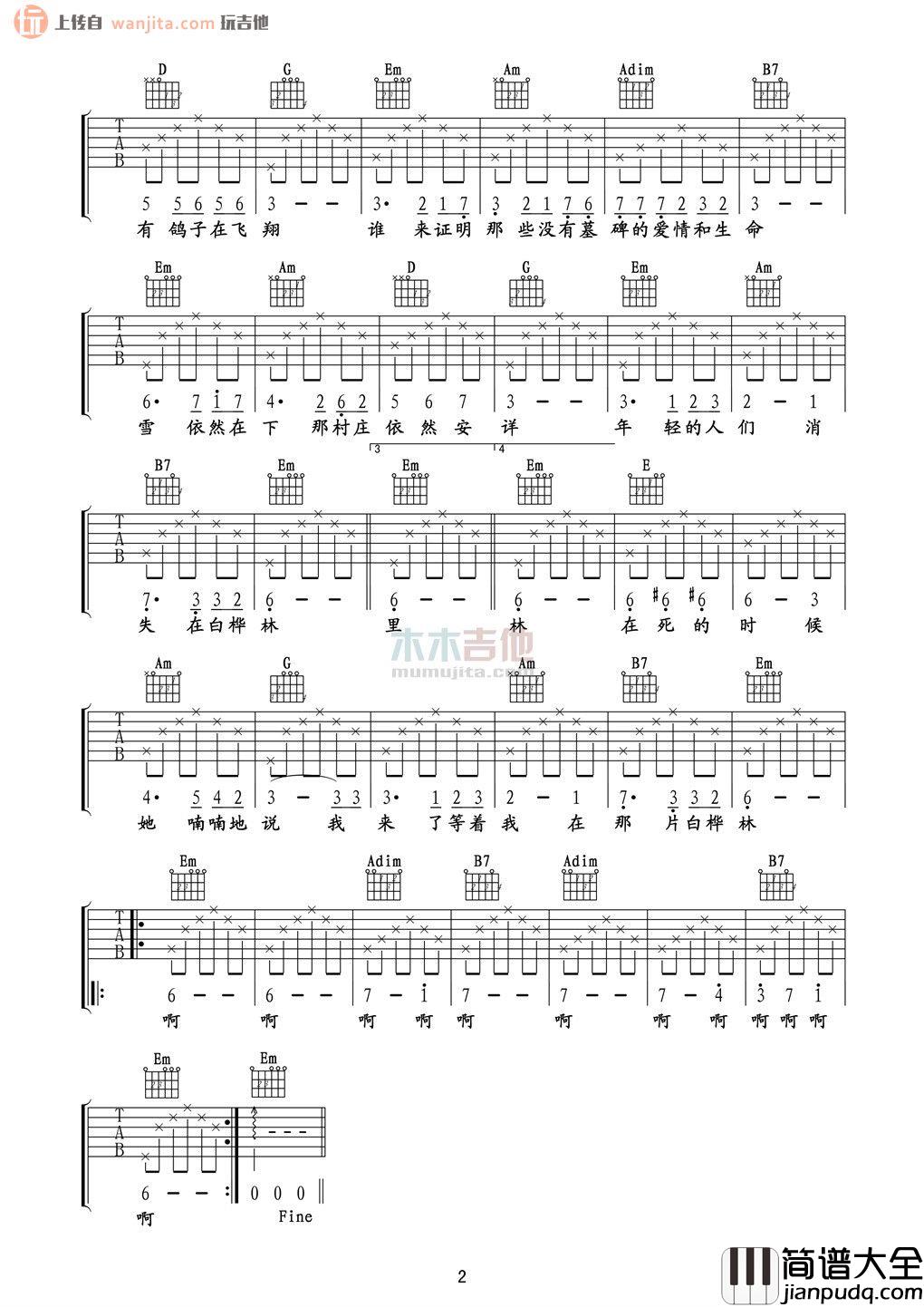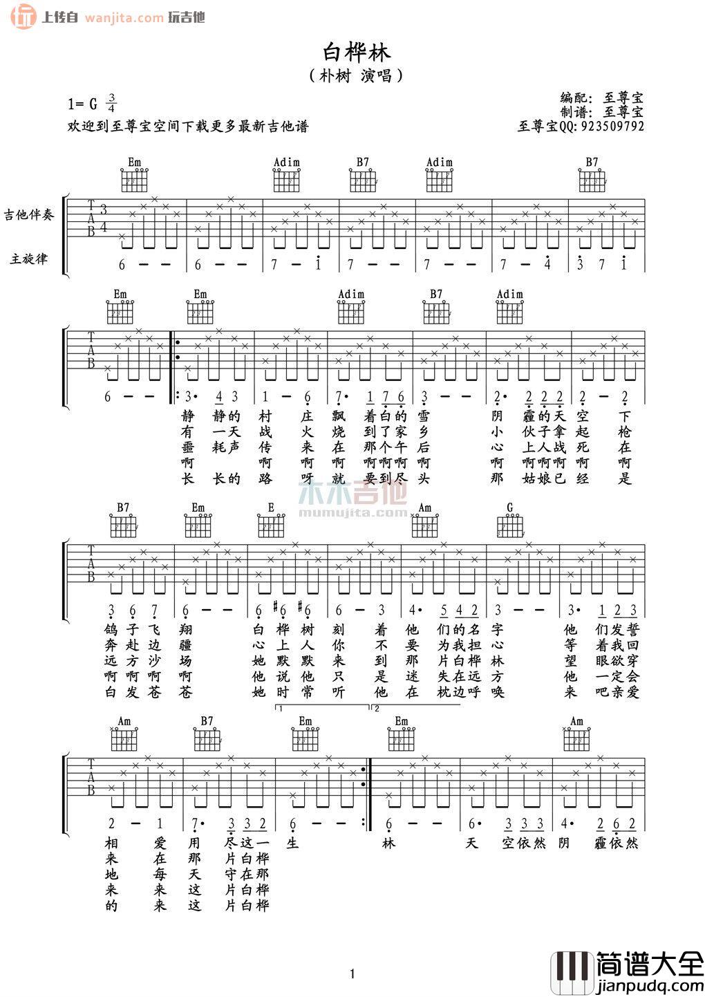 《白桦林》吉他谱,原调G调,不使用变调夹。至尊宝制谱编配。曲谱整体较为简单,更多的是营造歌曲氛围。这首民谣歌曲十分适合一个人慢慢的唱,慢慢的理解和学习。