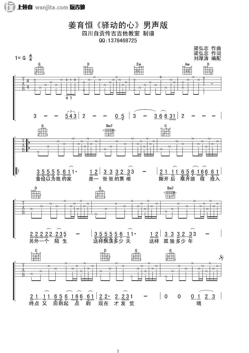 《驿动的心》吉他谱,选用G调编配,总共3张高清图片谱,由刘厚涛老师提供分享,分解和弦的过程中有些节奏的变化,开始弹唱之前,最好充分的练习一下右手节奏,整体难度不算大。