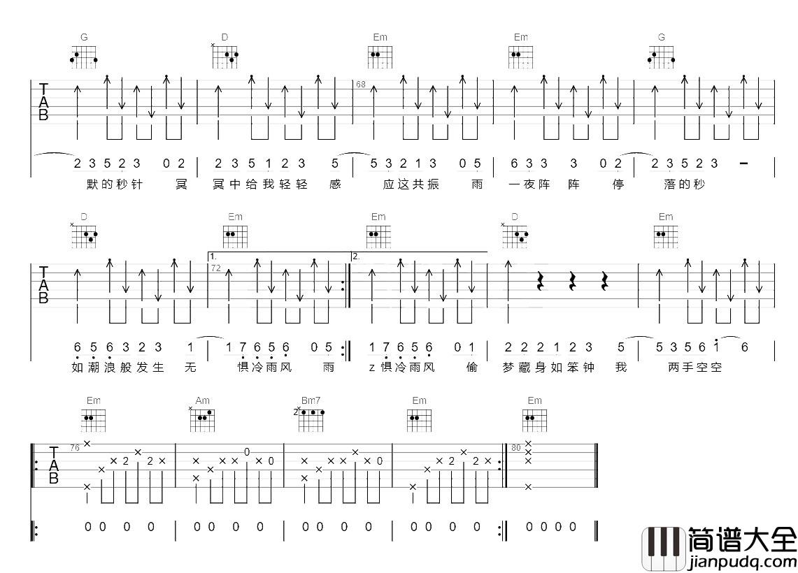 李克勤王赫野《秒针》吉他谱-图2
