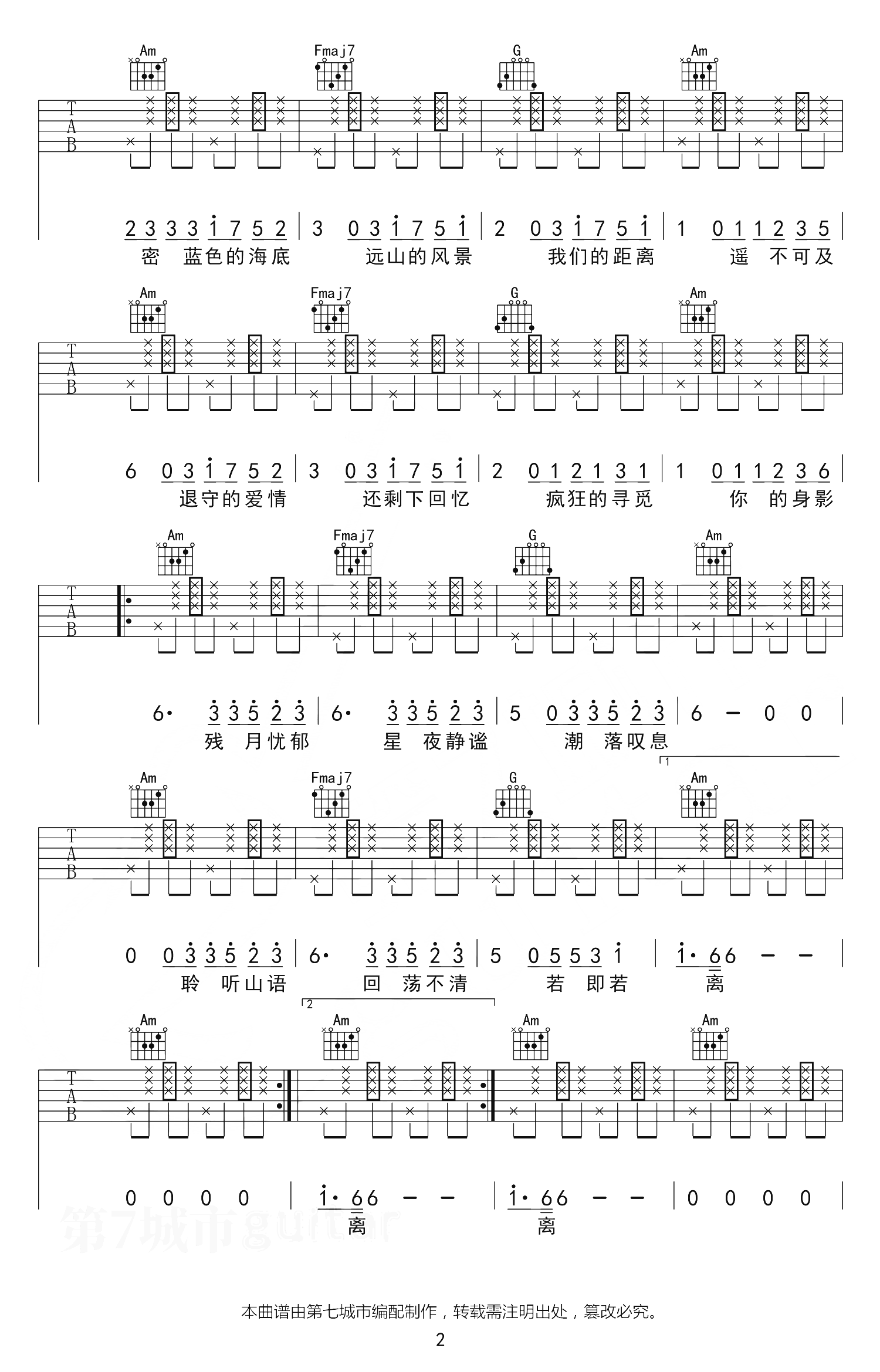 公众号:绵羊乐谱 这首歌曲由第七城市编配制谱。总共2张高清图片谱,原调是#C,选用C调指法,变调夹夹1品弹唱原调,曲谱中运用到了拍弦技巧,特别是一些细节的处理更需要大家注意,推荐中级以上水平的练习哦。 公众号:绵羊乐谱 | 官方QQ群:978773290 不吃独食,学会分享!本文链接:http://www.shaomingyang.com/btb/31536.html 转载请标明出处,尊重原创(๑╹◡╹)ノ。如信息有误或版权疑问,请通过网站底部联系我们会第一时间处理,感谢理解支持(◕ᴗ◕✿)!