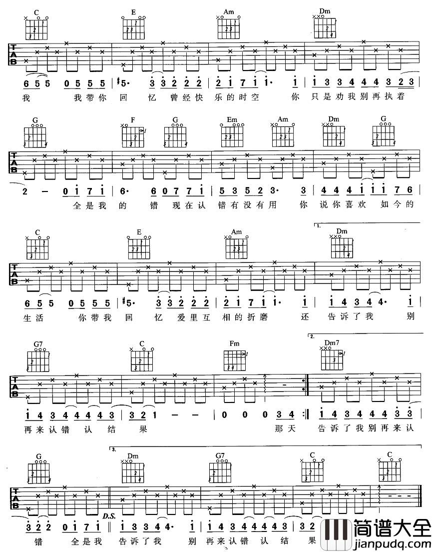 许嵩认错吉他谱,总共2张高清图片谱,原调是D调,选用C调指法,节拍4/4拍,弹唱建议变调夹夹2品弹唱原曲调,弹唱难度初级。