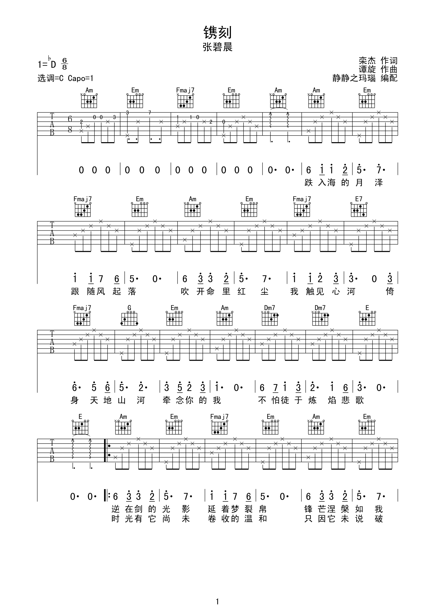 本文题目 雕琢吉他谱 (C调) 吉他图片谱2张 ,本文网址