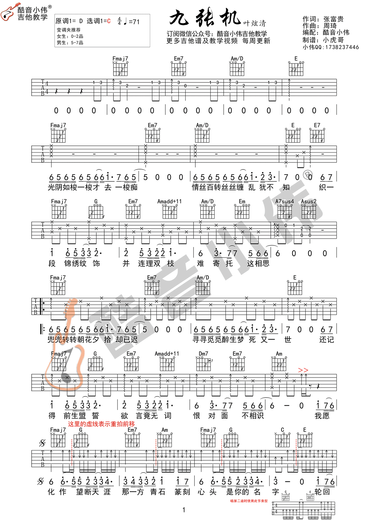 本文题目 九张机吉他谱 叶炫清(C调) 吉他图片谱2张 ,本文网址