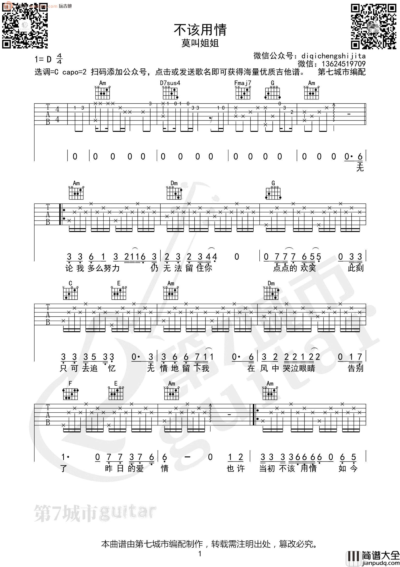 公众号:绵羊乐谱 不该用情吉他弹唱谱由第7城市编配制谱,总共3张高清图片谱,原调是D调,选用C调指法编配,变调夹夹2品可以弹唱原调。 公众号:绵羊乐谱 | 官方QQ群:978773290 不吃独食,学会分享!本文链接:http://www.shaomingyang.com/btb/31729.html 转载请标明出处,尊重原创(๑╹◡╹)ノ。如信息有误或版权疑问,请通过网站底部联系我们会第一时间处理,感谢理解支持(◕ᴗ◕✿)!