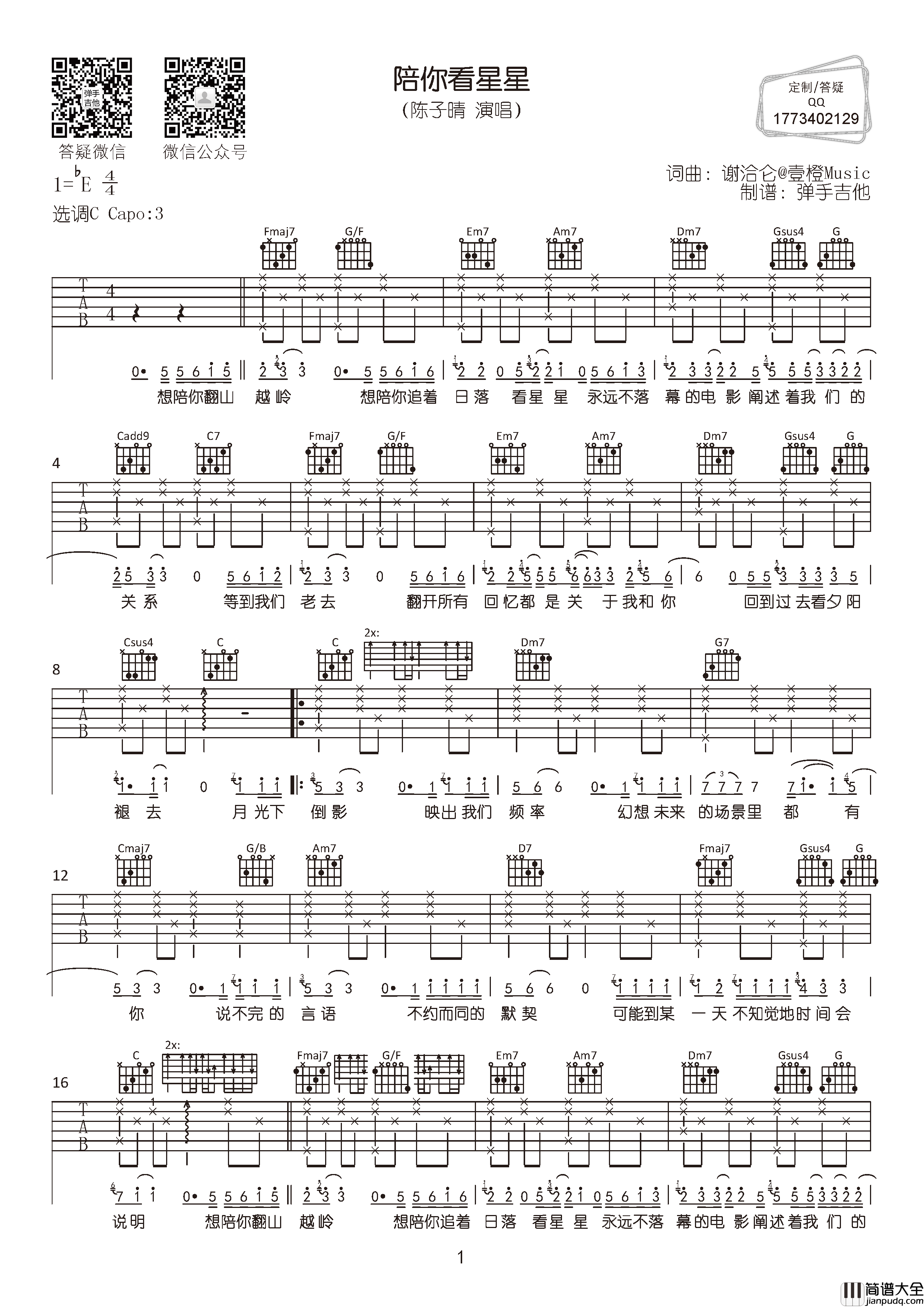 公众号:绵羊乐谱 曲谱是由弹手吉他制谱,原调bE,选用C调指法,变调夹夹3品,弹唱难度不大,还原度还不错,感兴趣的朋友赶紧试弹一下吧! 公众号:绵羊乐谱 | 官方QQ群:978773290 不吃独食,学会分享!本文链接:http://www.shaomingyang.com/btb/31734.html 转载请标明出处,尊重原创(๑╹◡╹)ノ。如信息有误或版权疑问,请通过网站底部联系我们会第一时间处理,感谢理解支持(◕ᴗ◕✿)!