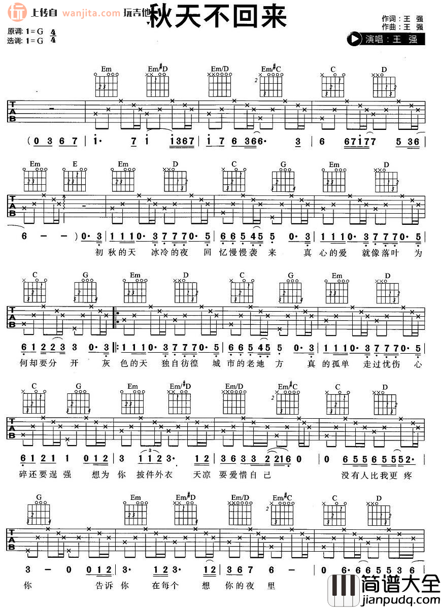 公众号:绵羊乐谱 《秋天不回来》吉他谱,选用G调指法编配,标准的建议版本,弹唱难度不大,纯分解和弦方式弹唱。 公众号:绵羊乐谱 | 官方QQ群:978773290 不吃独食,学会分享!本文链接:http://www.shaomingyang.com/btb/31793.html 转载请标明出处,尊重原创(๑╹◡╹)ノ。如信息有误或版权疑问,请通过网站底部联系我们会第一时间处理,感谢理解支持(◕ᴗ◕✿)!