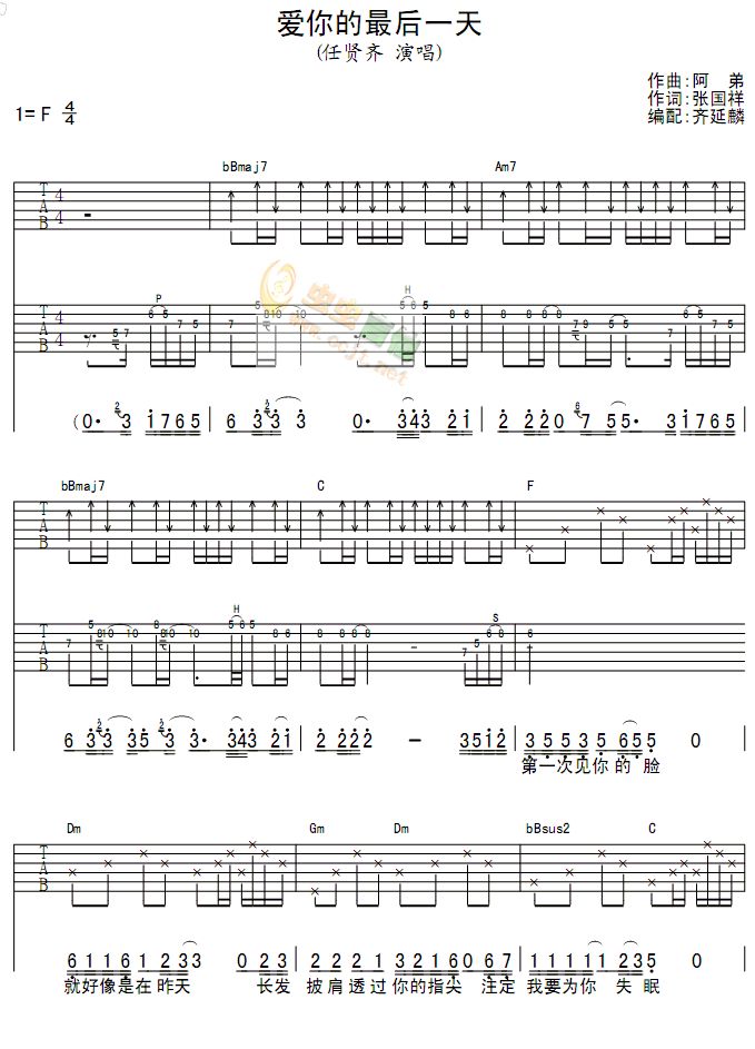 本文题目 爱你的最终一天吉他谱 任贤齐(未知调) 吉他图片谱2张 ,本文网址